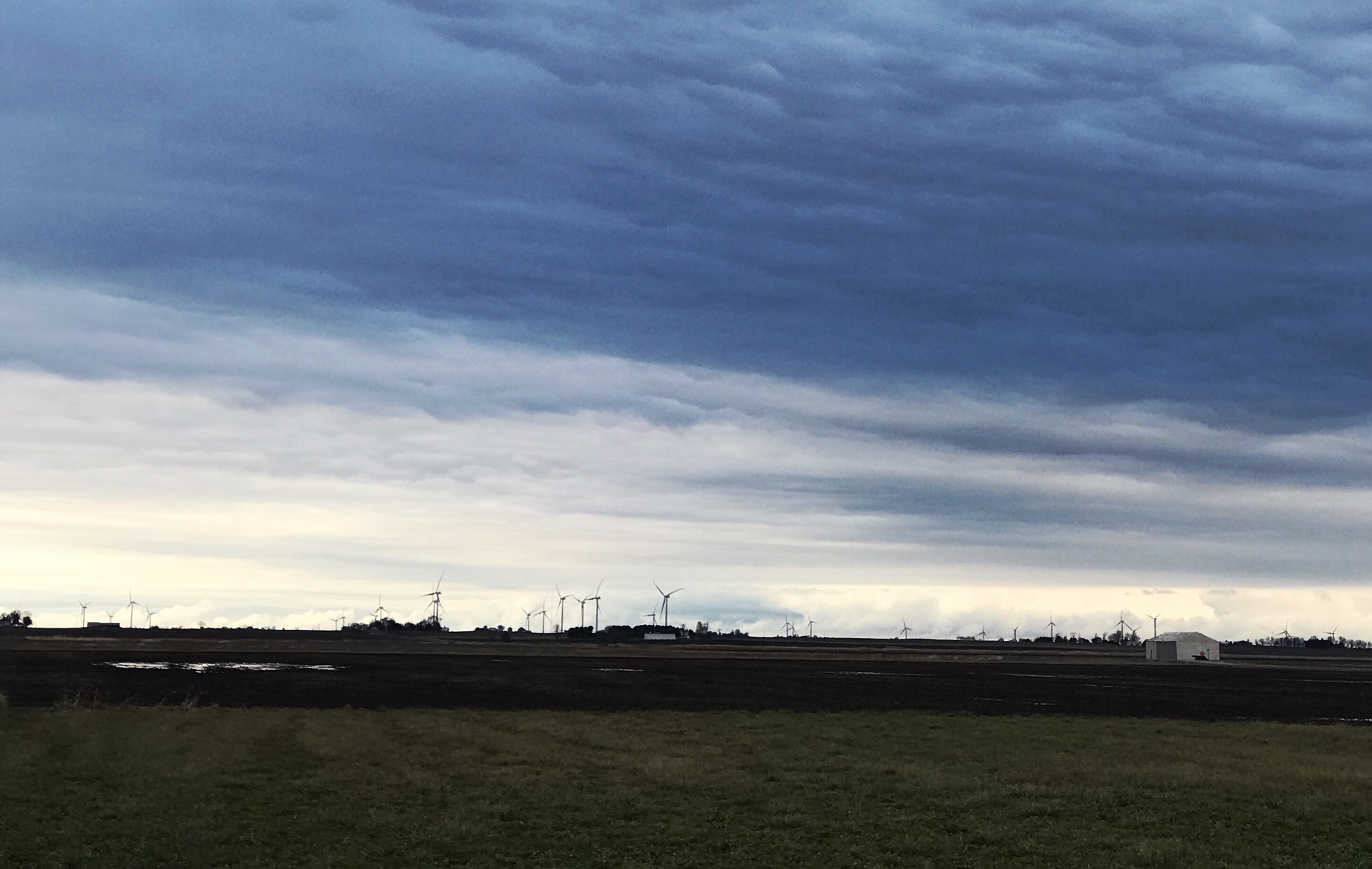 Below is one of dawn’s images from yesterday. That tiny sliver of flippant colour below all that brooding dark cloud.