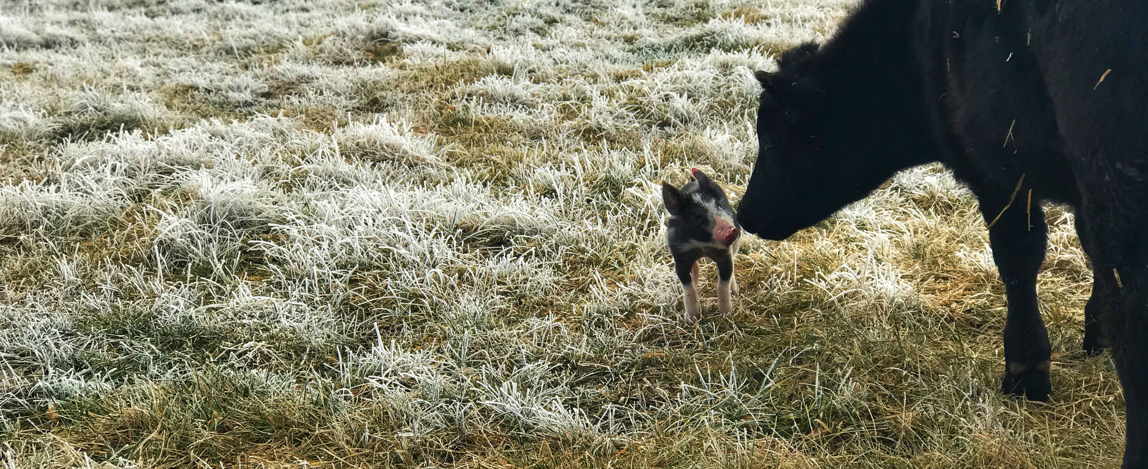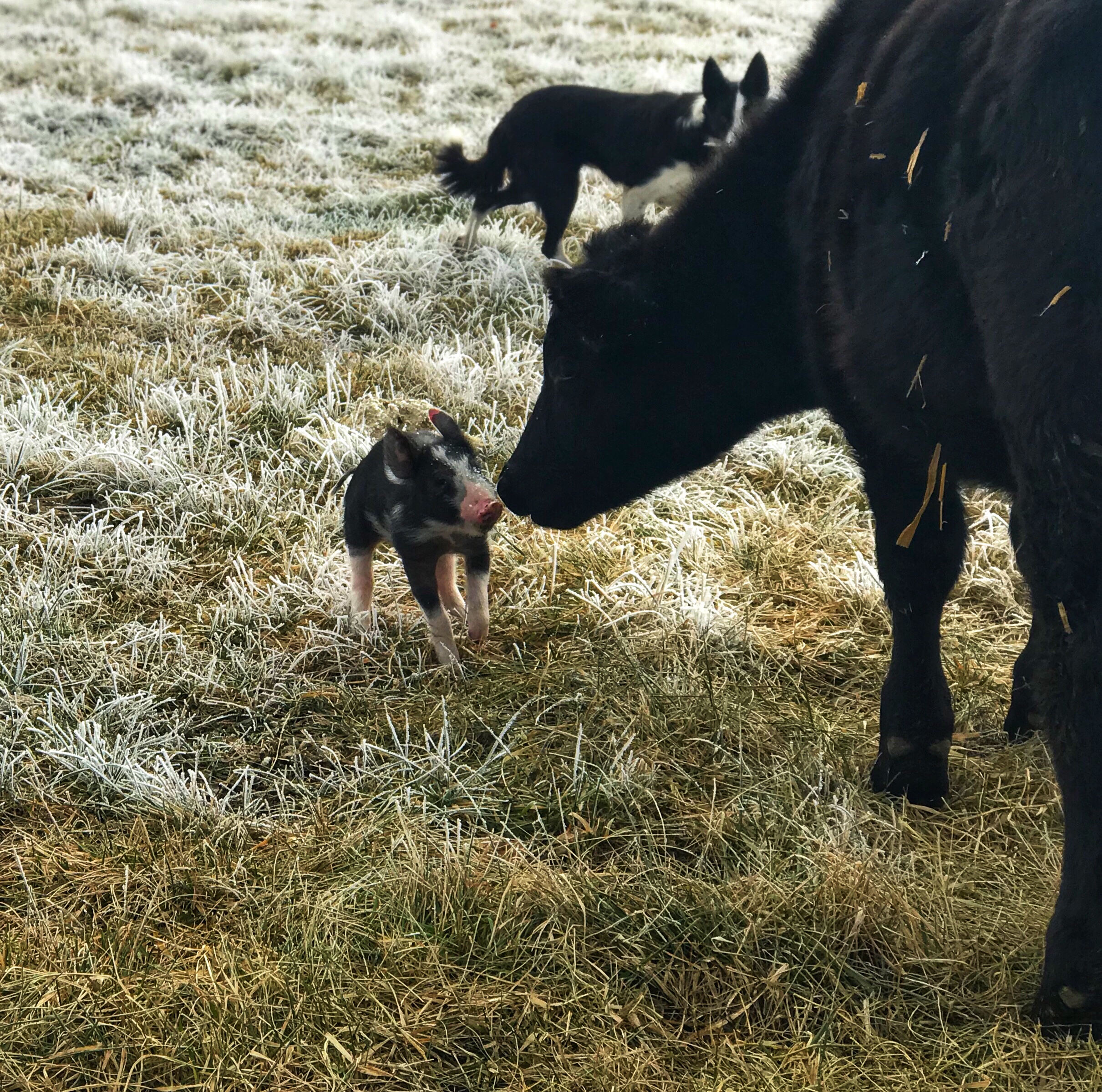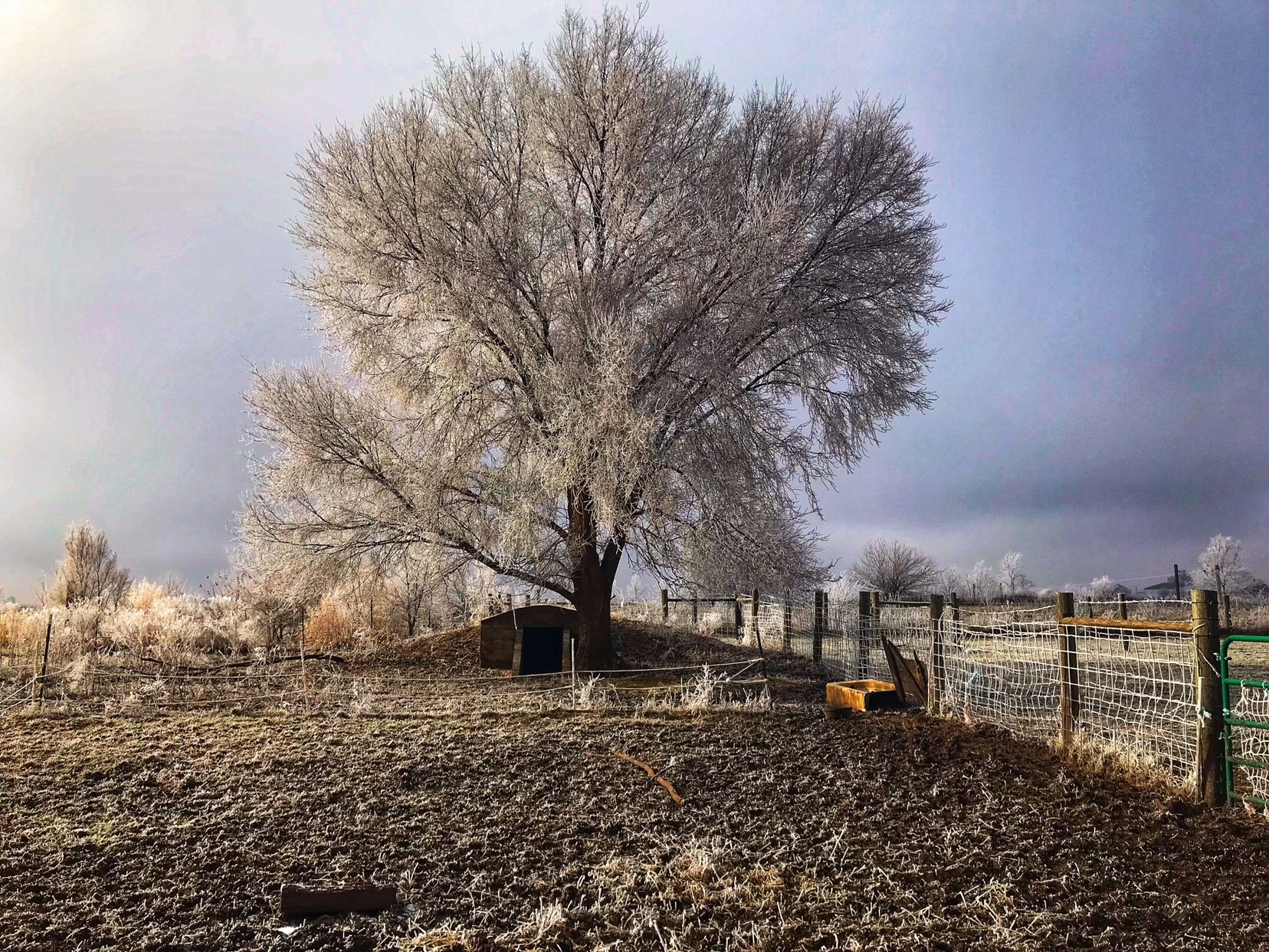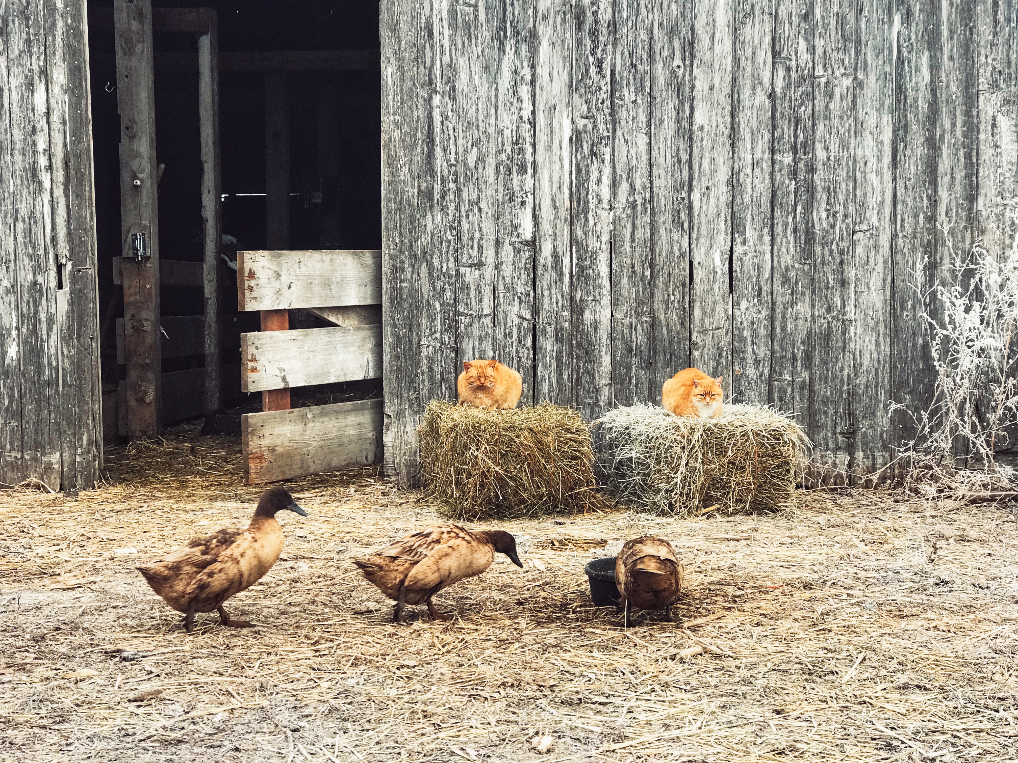 I laughed at the cows whose eyelashes were white from the sticky frost layering up on their hairs until I went inside and found that I was the same. The hair that had strayed from under my hat had the same treatment.