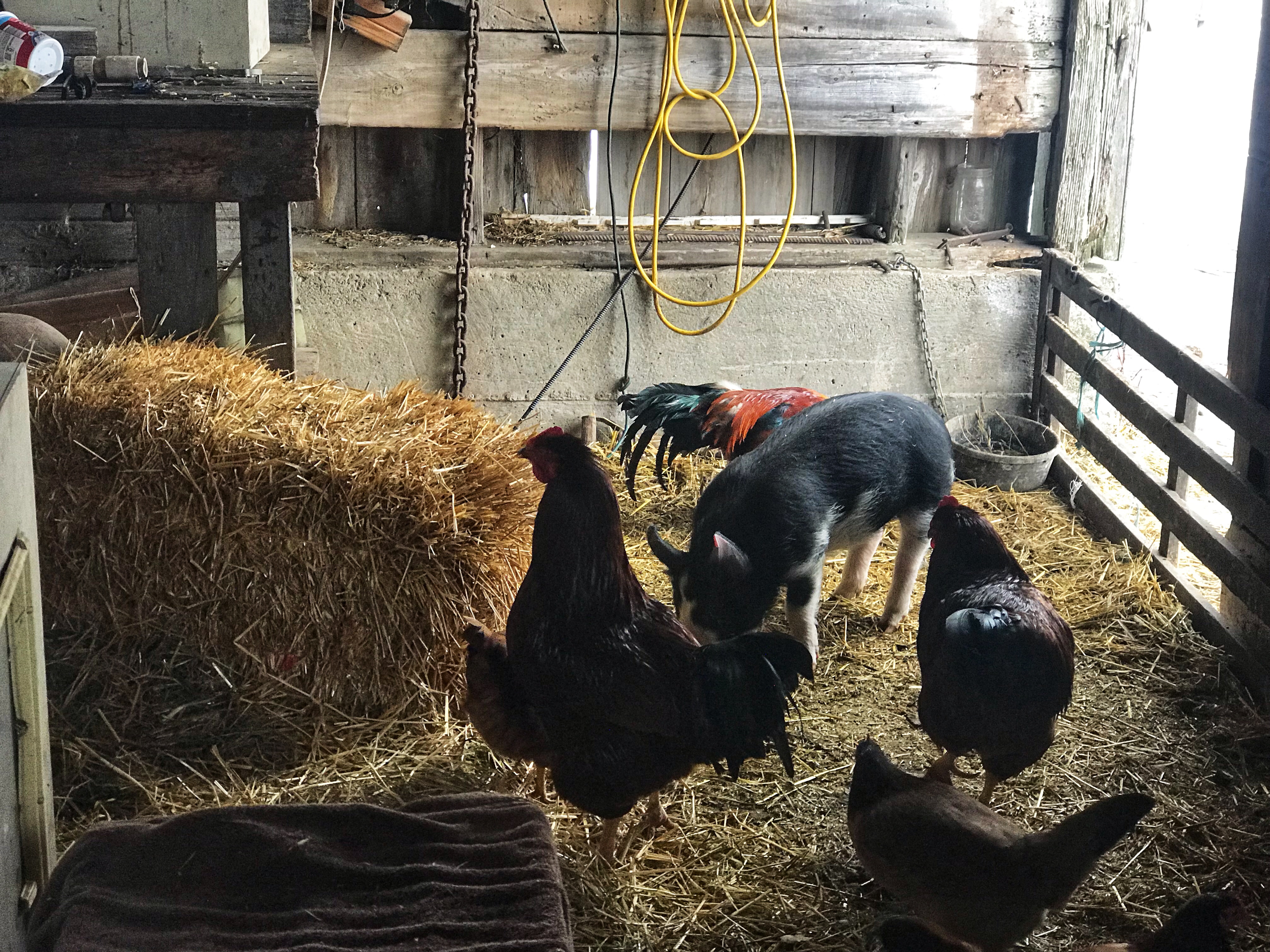 By the time I got to work on the other side the rain had all frozen solid. So the straw just skittered off like a hockey puck. And we have wind coming. But I got quite a few of the worst high traffic frozen puddles covered in wet straw. Under gates and doorways – I am hoping a little straw sticks around to give me some traction.