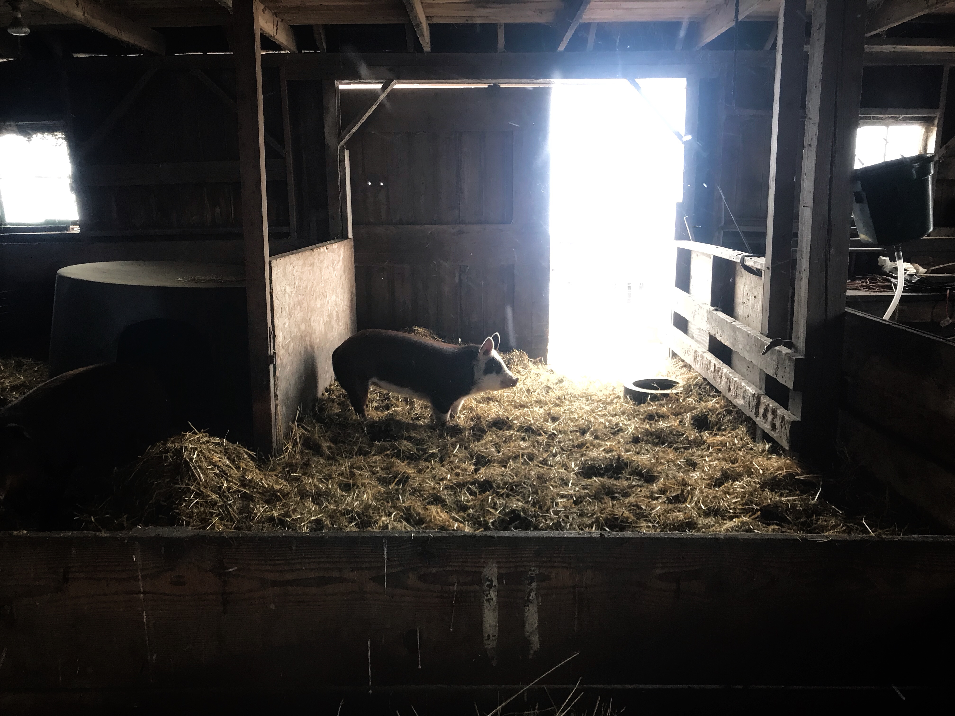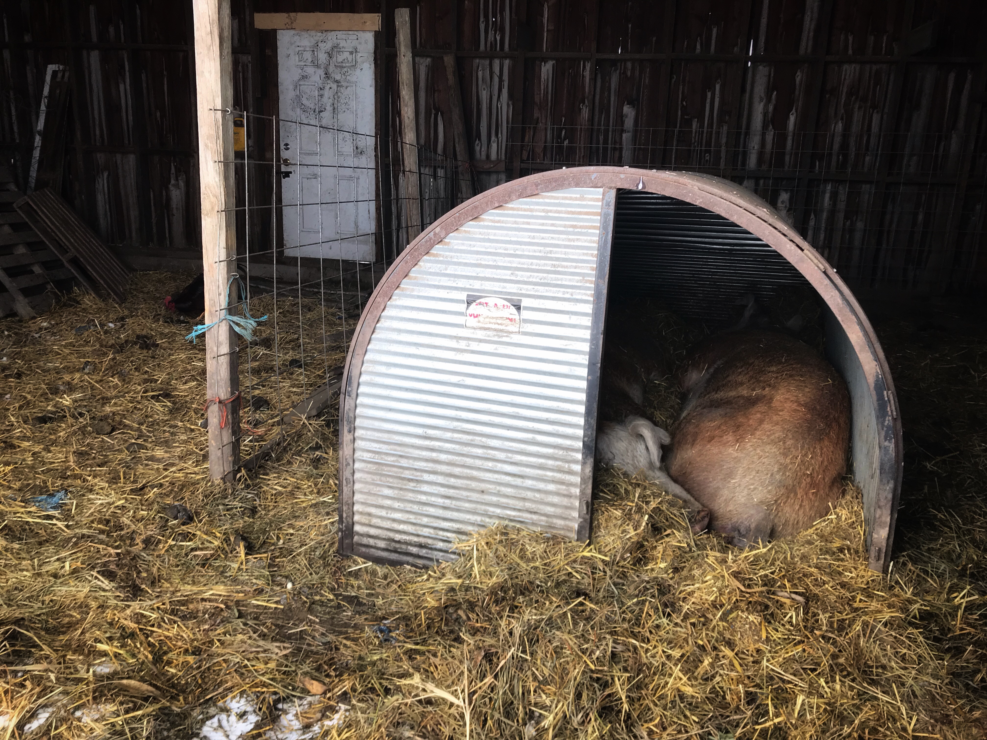The wind coming from the North was strong and very cold – and I kept finding random ducks back outside freezing cold so I threw down some straw deeper in the barn and I herded the lot into the milking room and shut the door on them.