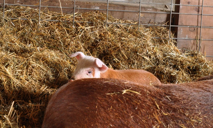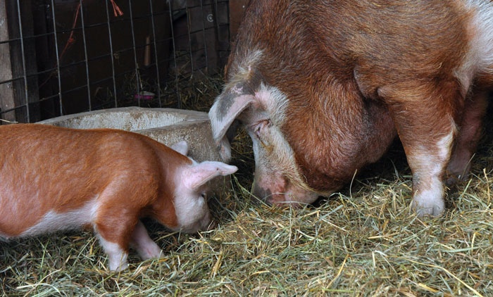 It was very rare to have a big gilt who has never had piglets take on a little piggie.