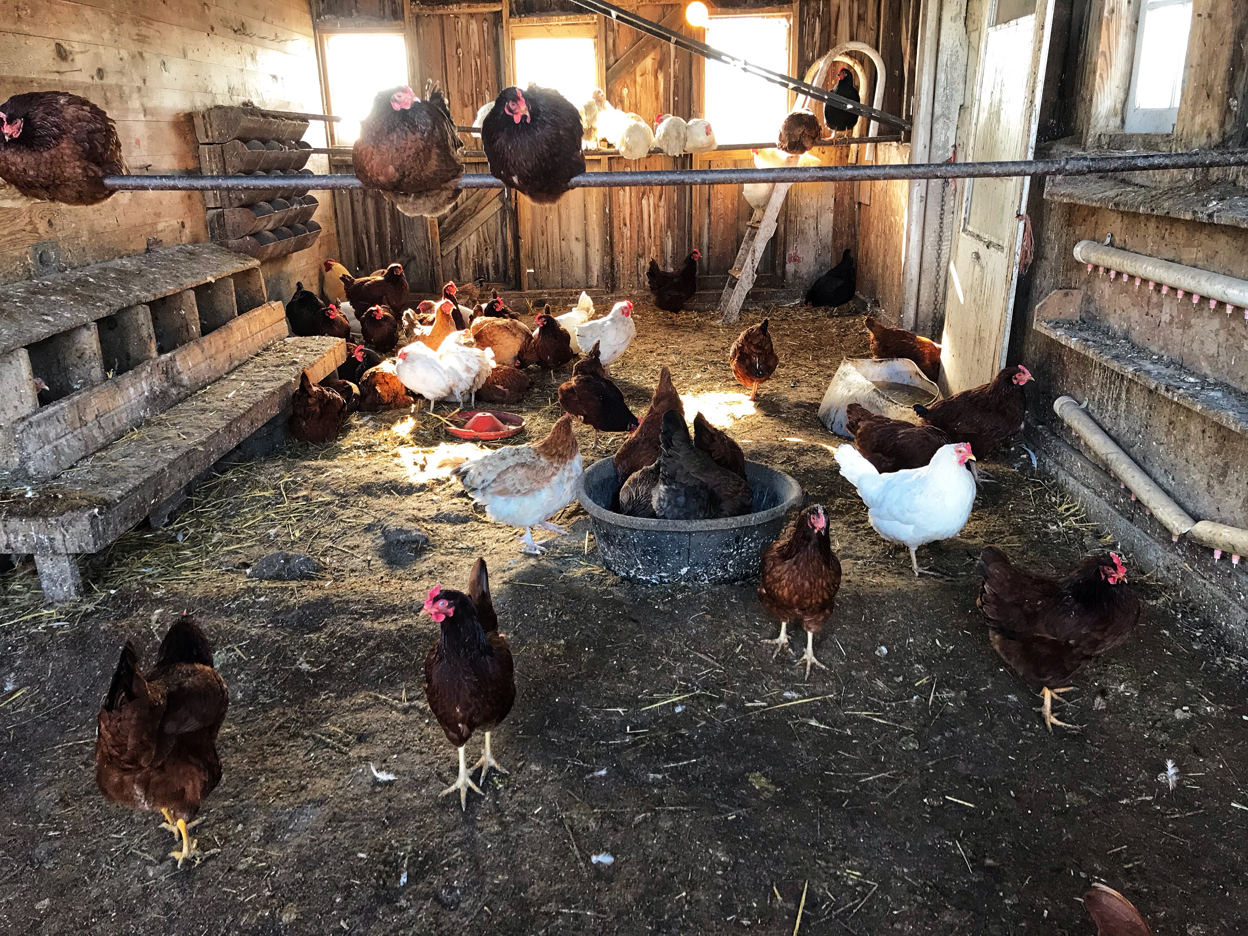 The ducks are laying eight eggs – the last two mornings. This means one of the injured ducks is laying. And yesterday I saw the worst looking one stretch her neck back and start grooming so that is a definite improvement. They still hang out by themselves as the rest of the flock graze from field to field but they all go to bed together which will maintain some cohesion in the flock.