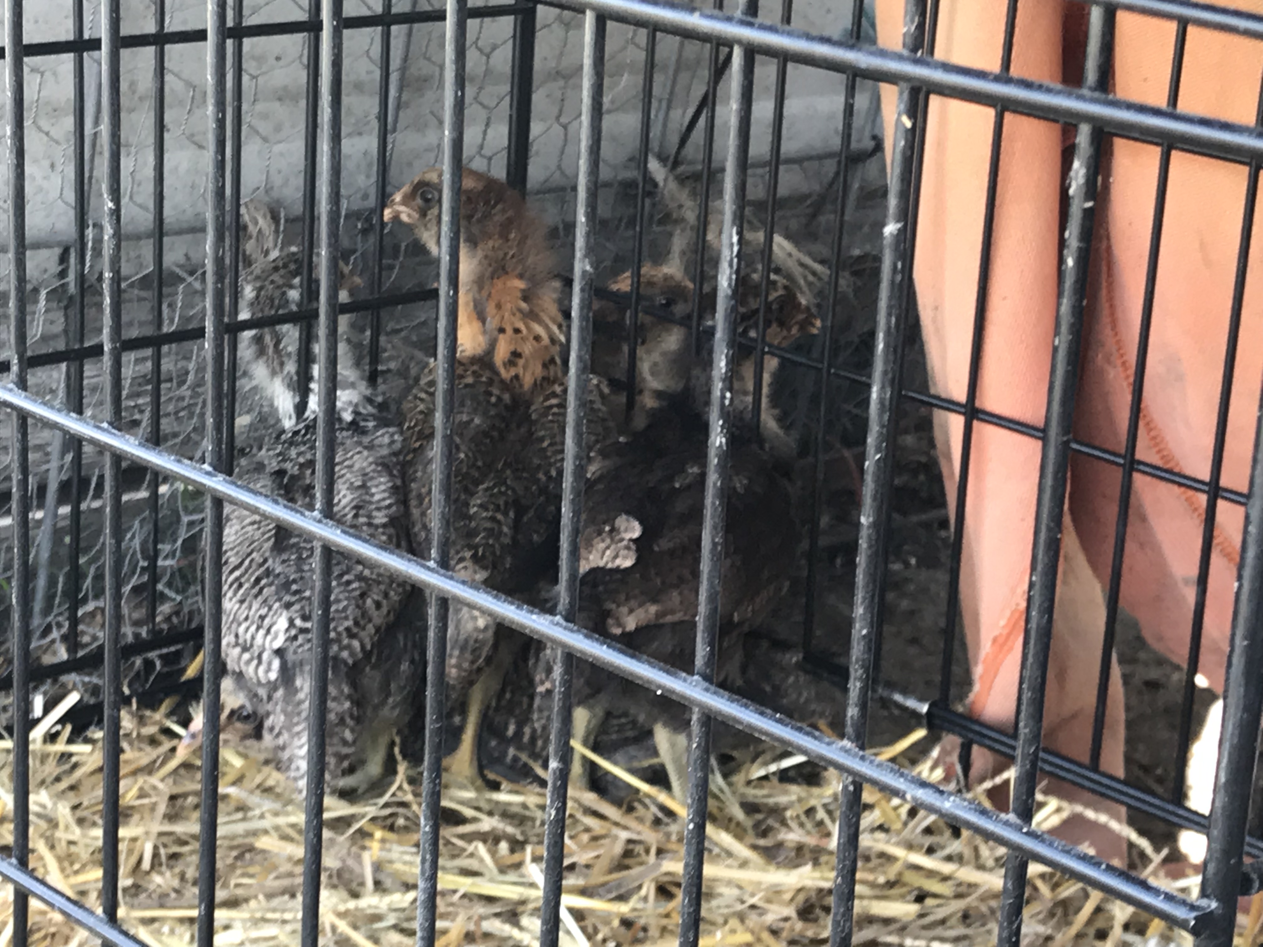 The Easter Eggers have come out of the turkey house and are in a small cage inside the Australorps Tin House. After a few days I will set them free in there so they blend with that flock. They look like owls. And are impossible to get a photo of at the moment – too scared.