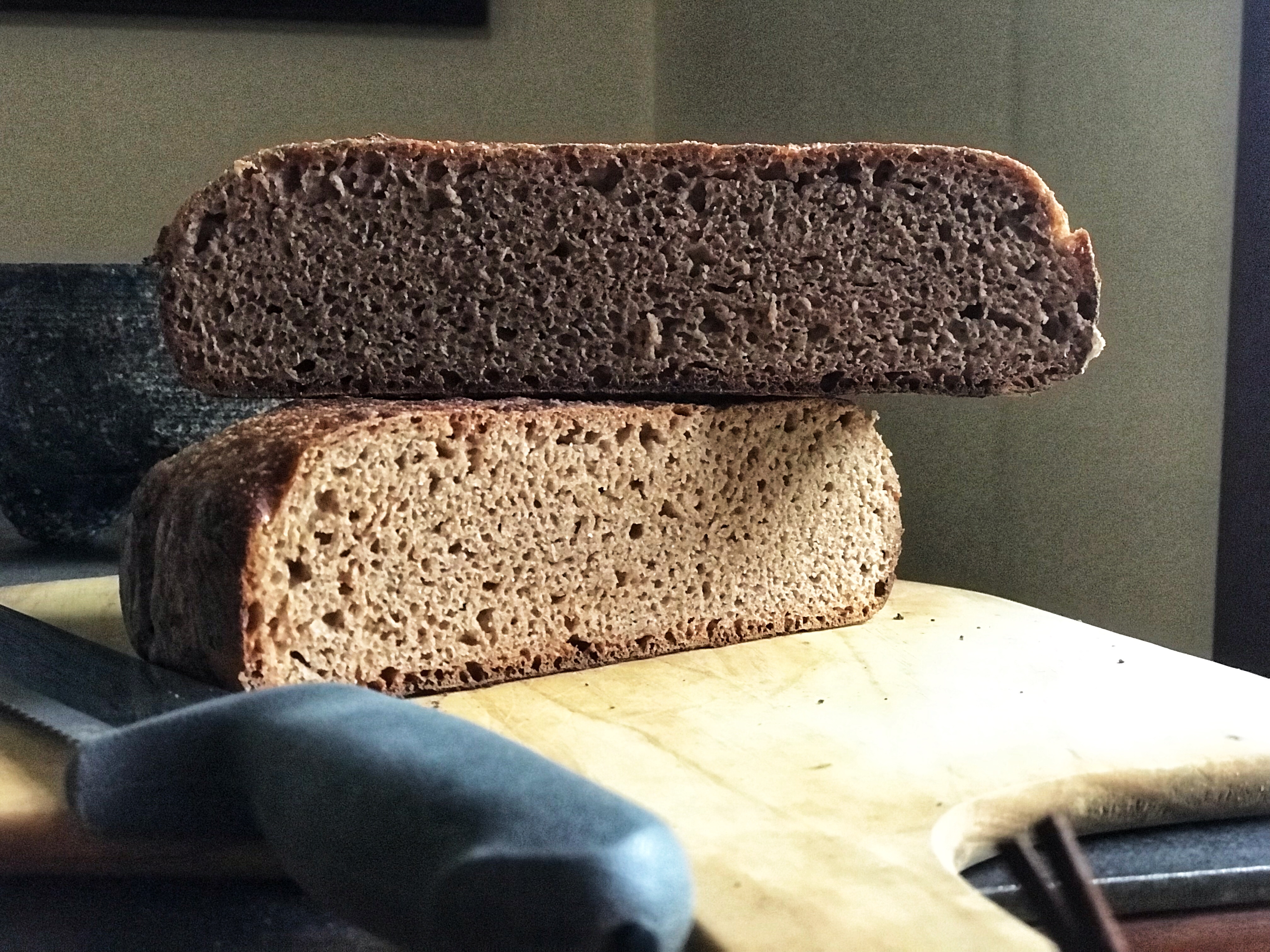 3. The bread looks extremely tasty, if a bit dense. I don’t think the humidity will have helped, but I think maybe more starter is needed; all the recipes I’ve seen for mixed grains use a larger proportion.