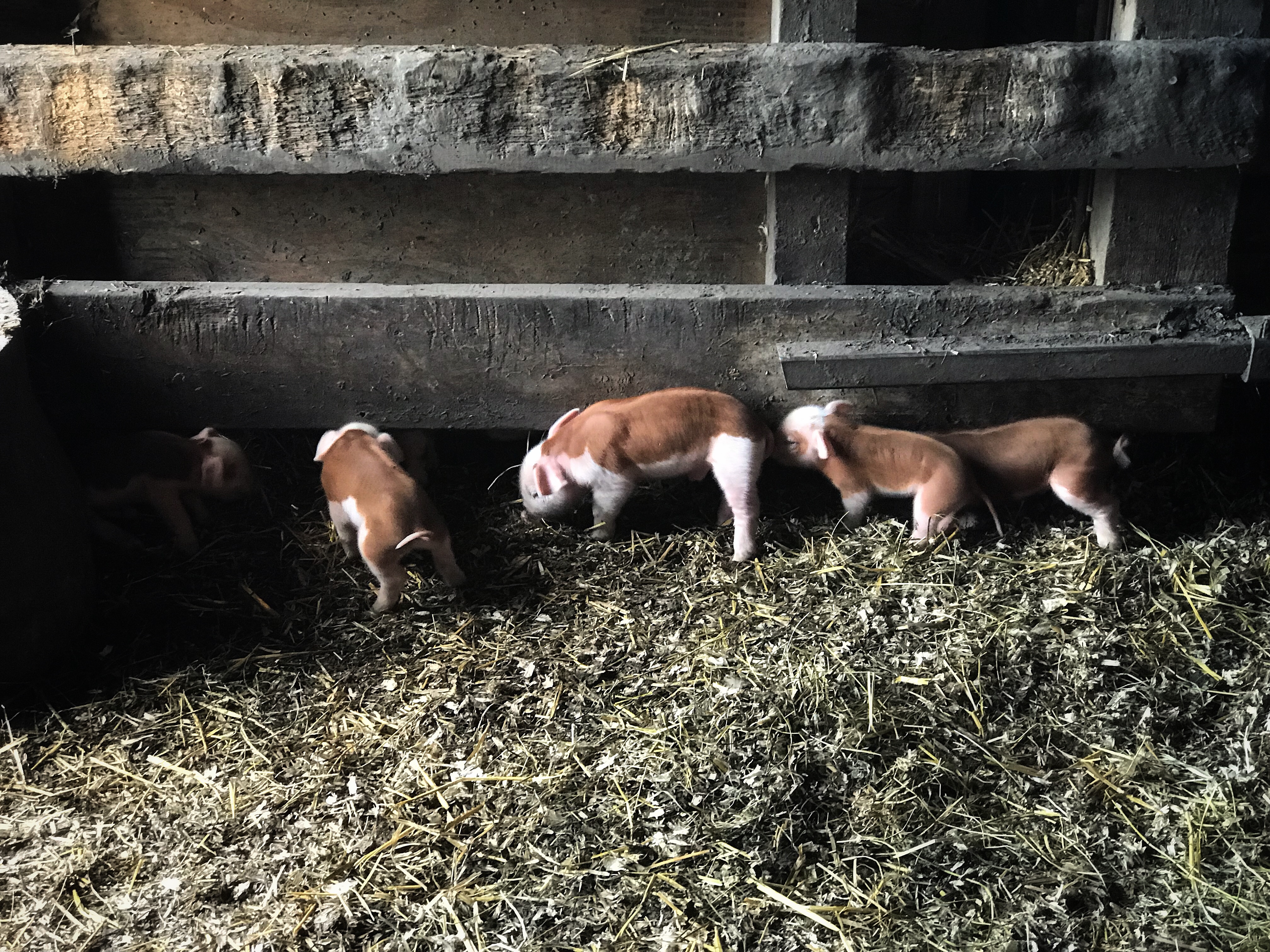 Seven little piglets who have shown no interest in their creep at all this time. Hopefully soon.