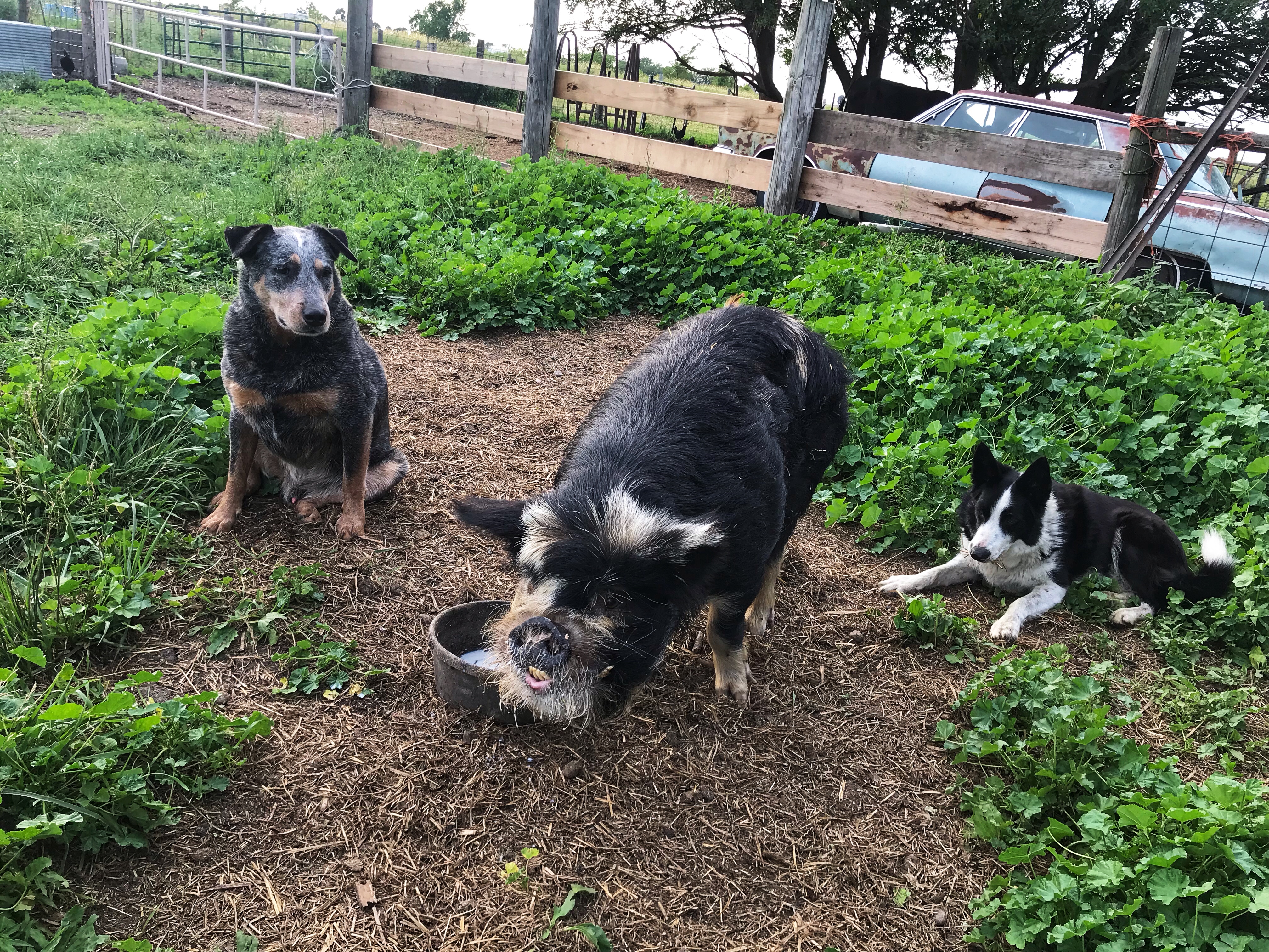 Boo watches over Tane while he has his milk – glaring at any chickens that dare get too close. Turn when Tane is done and moves off Boo licks the bowl. It is all very polite. The gallon of cows milk is doing wonders for his arthritis. Sheila gets some too and seems better. She had a wee bout where she was finding it difficult to walk. Raw cows milk in large quantities is magic.