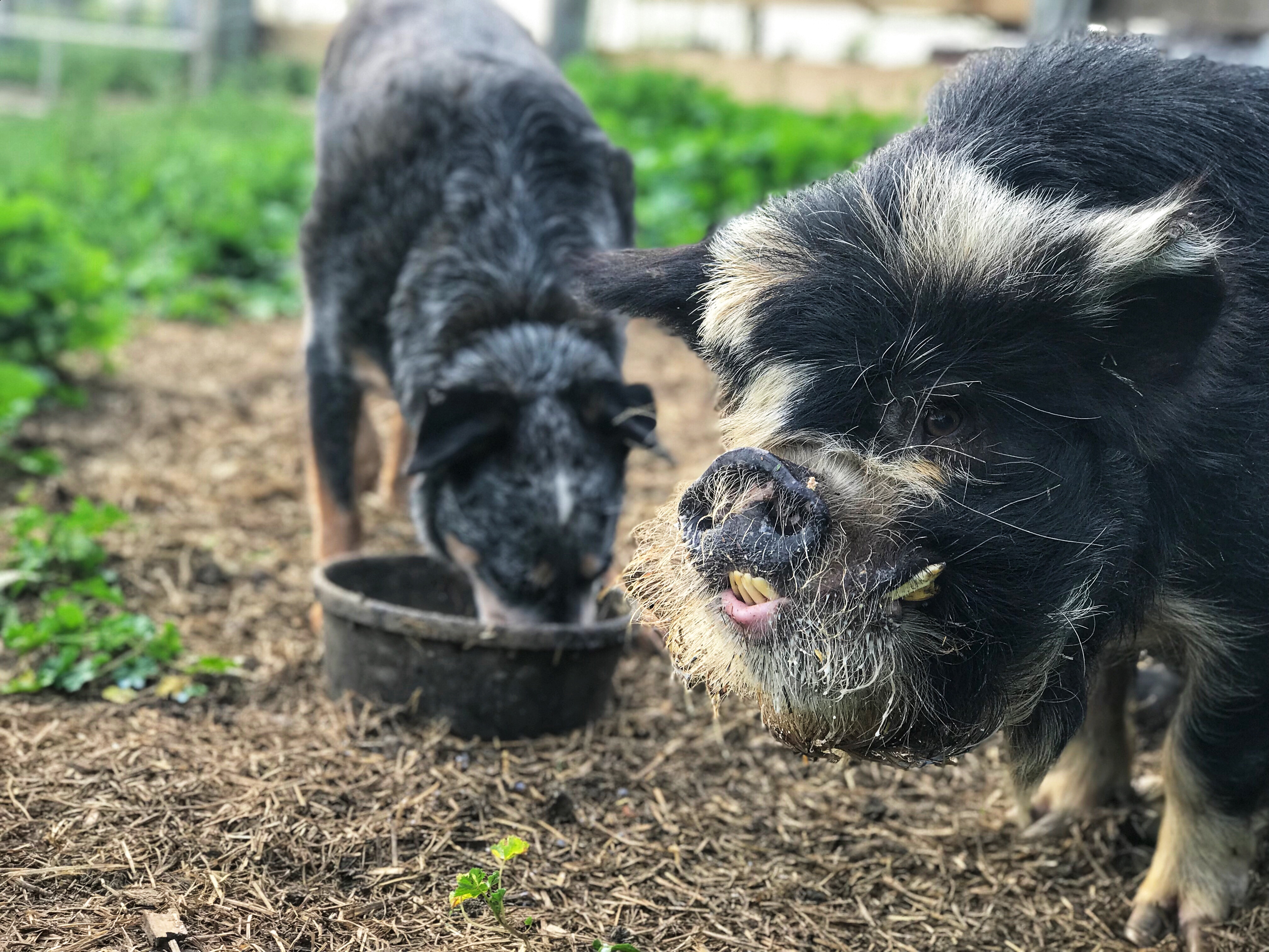 A monster in the duck pond. Wai hung out in the pond almost all day yesterday. We are in the nineties for a few days yet and all the pigs seek puddles everywhere.