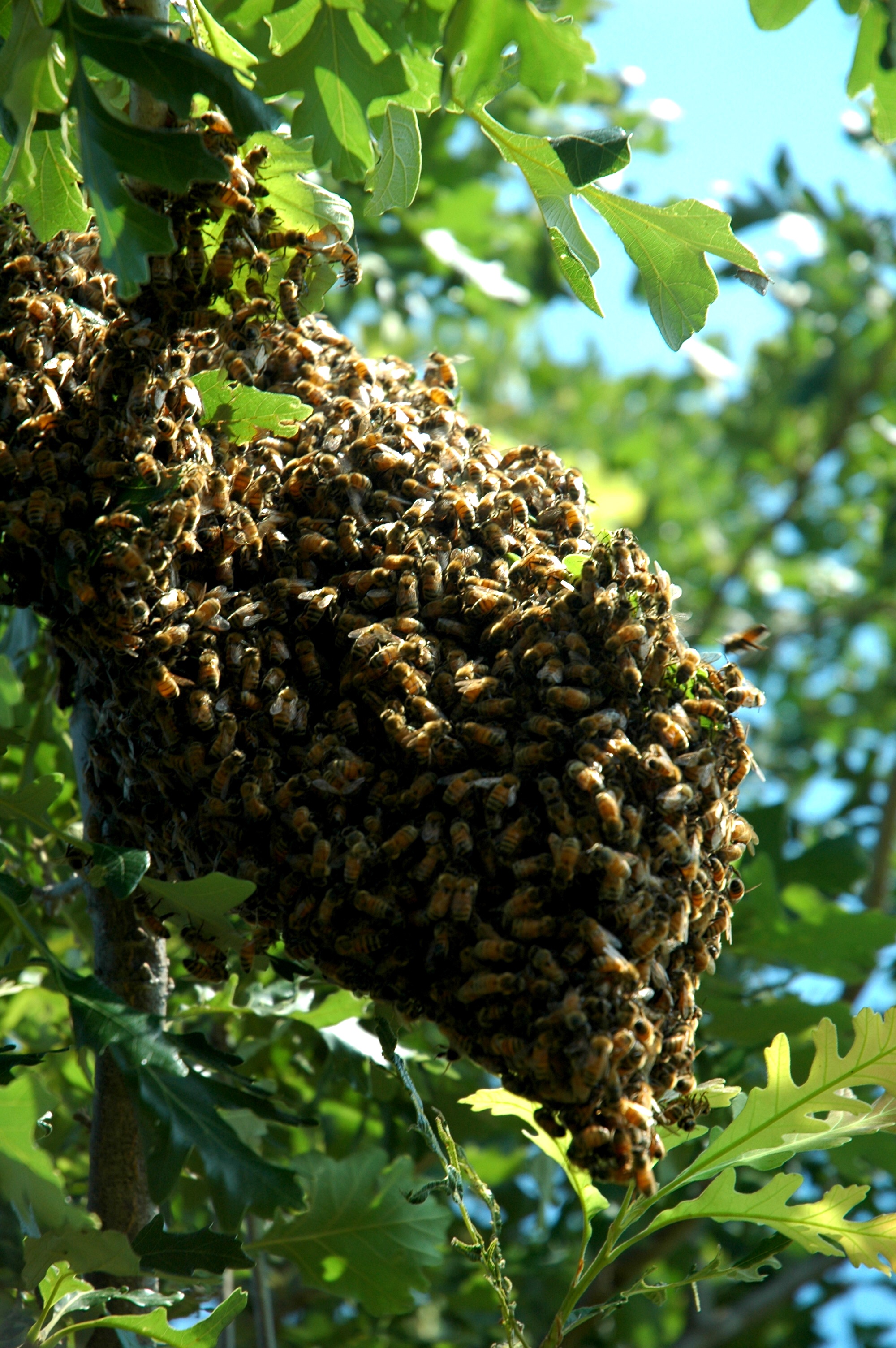 Such an incredible photo of the swarm C; their abdomens literally aglow like lamp-lit jewels, so laden with honey… Fabulous!
