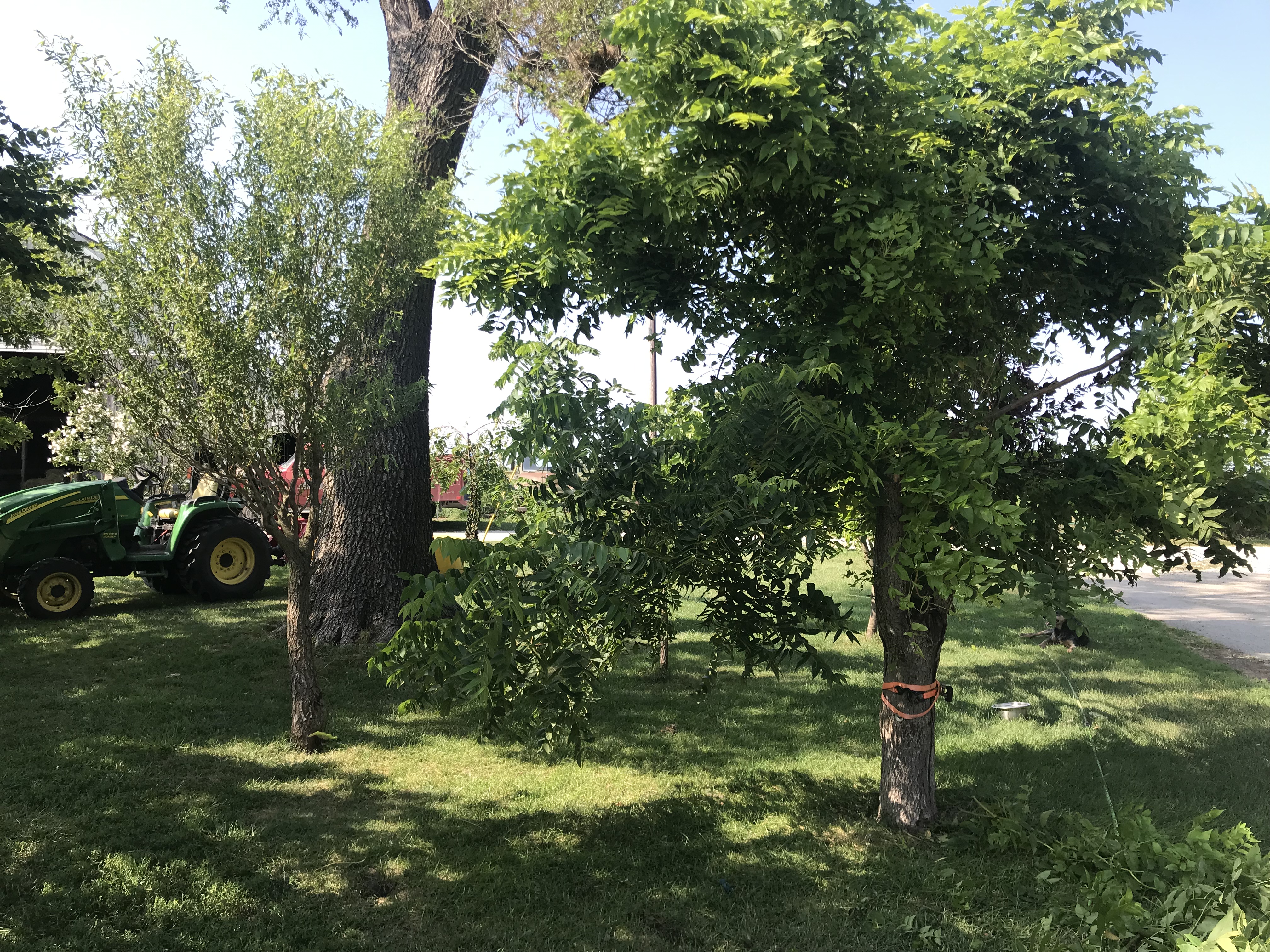Do you remember the walnut that was split down the middle in a bad storm last summer? Here she is. Recovering fast!