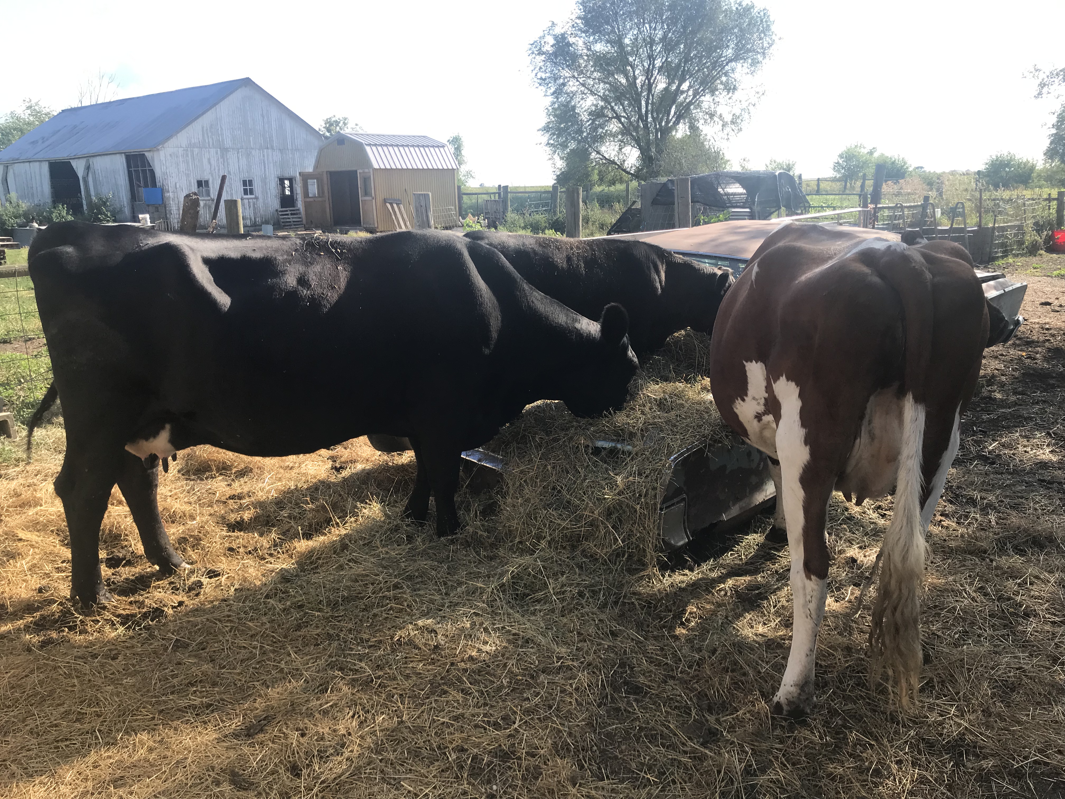 Tia escaped the other day – did I tell you? So I have the home cows up on the concrete pad while I get around all the fences. One last repair to do today and I will let them out again. At least I have a little hay for them, but look at that calf! Still he has to stand in the boot of the car at every opportunity.