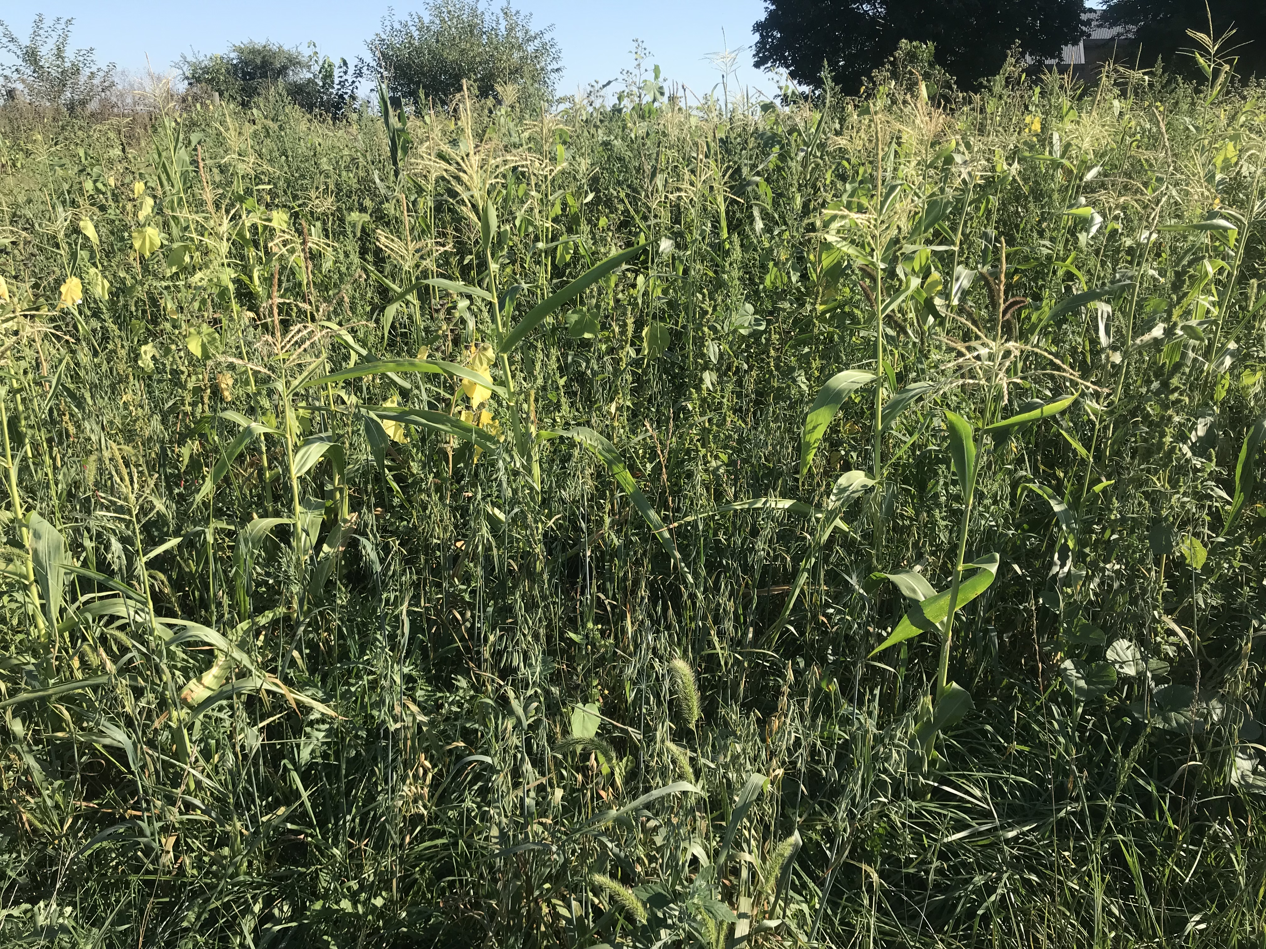 Above is the second to last stand of pig field. After I took this shot I looked down under the tall plants to admire all the undergrowth and there were three lovely melons – happily growing under there. So I am not moving the little pigs until my melons are ripe. They are big for plants I neither planted nor tended.