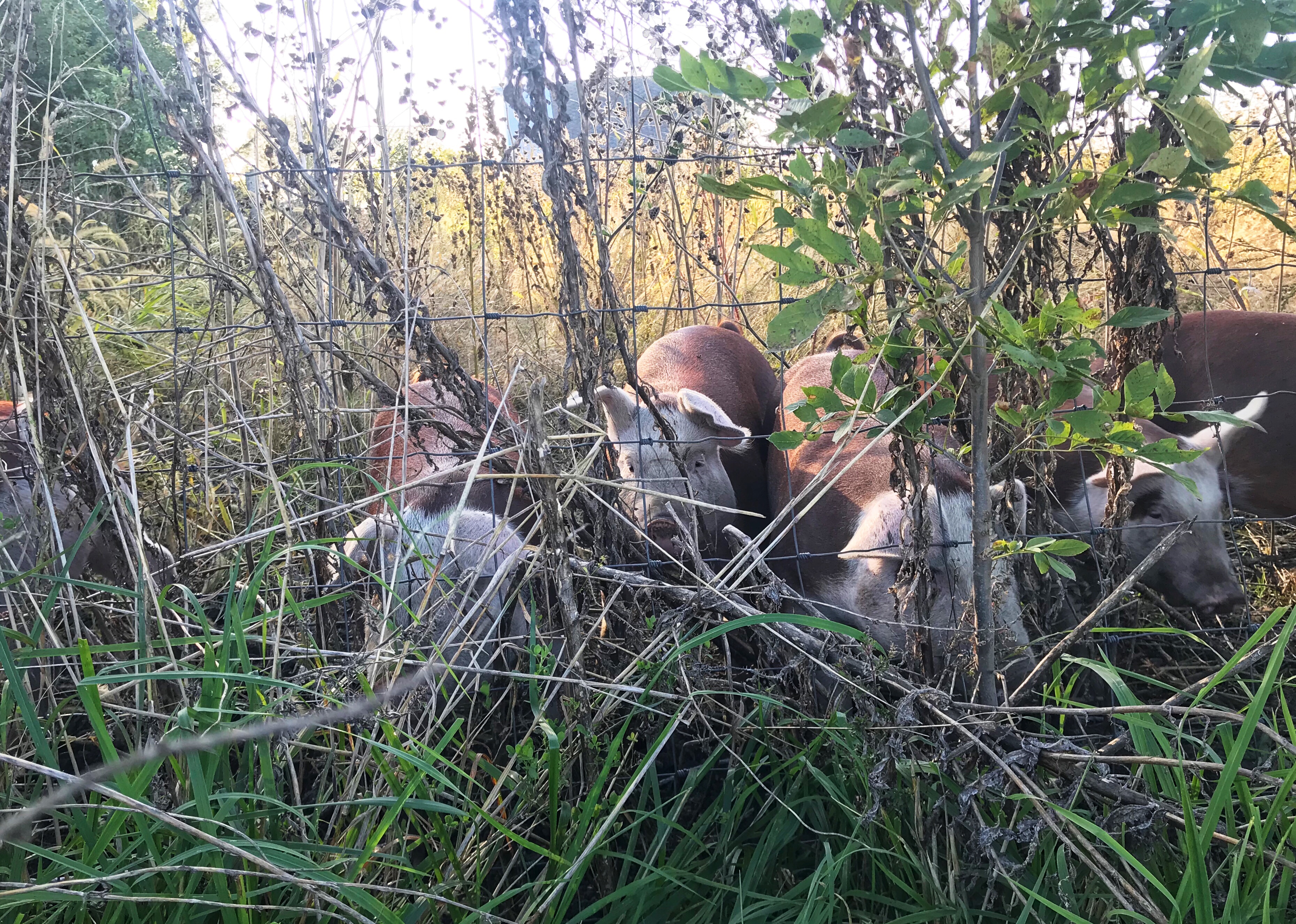 I opened another back gate and now the three are roaming the big back pig field that had just been vacated yesterday. Only a week ahead of schedule.