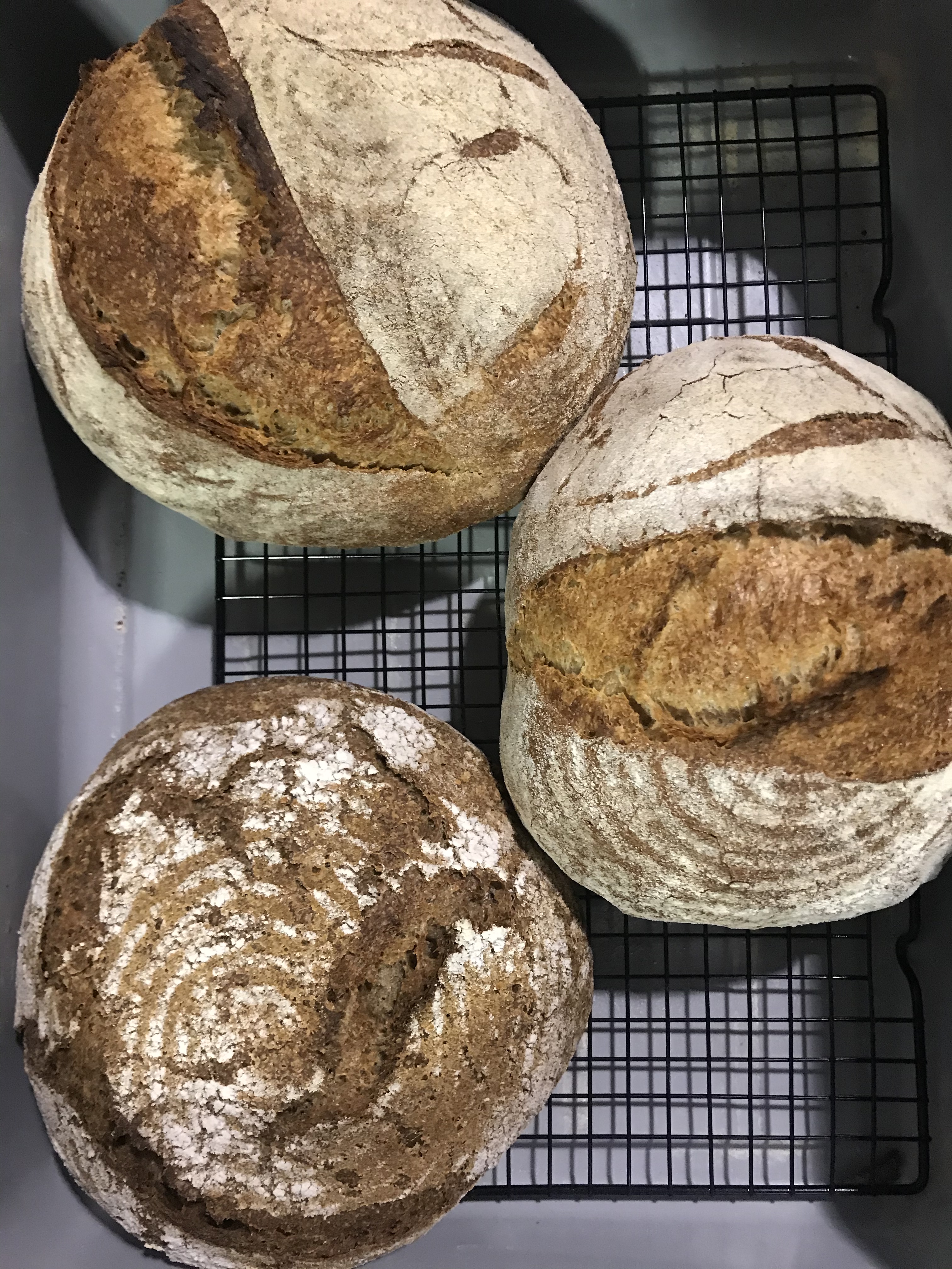 5. Your loaves all look fabulous and delicious. After a few years of baking adequate sourdough bread in clay panes and absorbing information from other bakers I decided to risk trying something new and baked straight out of overnight prove in the fridge into preheated enamelled dutch oven… after a few years of commenting that my other bread was good, the G.O. commented that the new style bread is the best ever, even going so far as to eat it voluntarily.