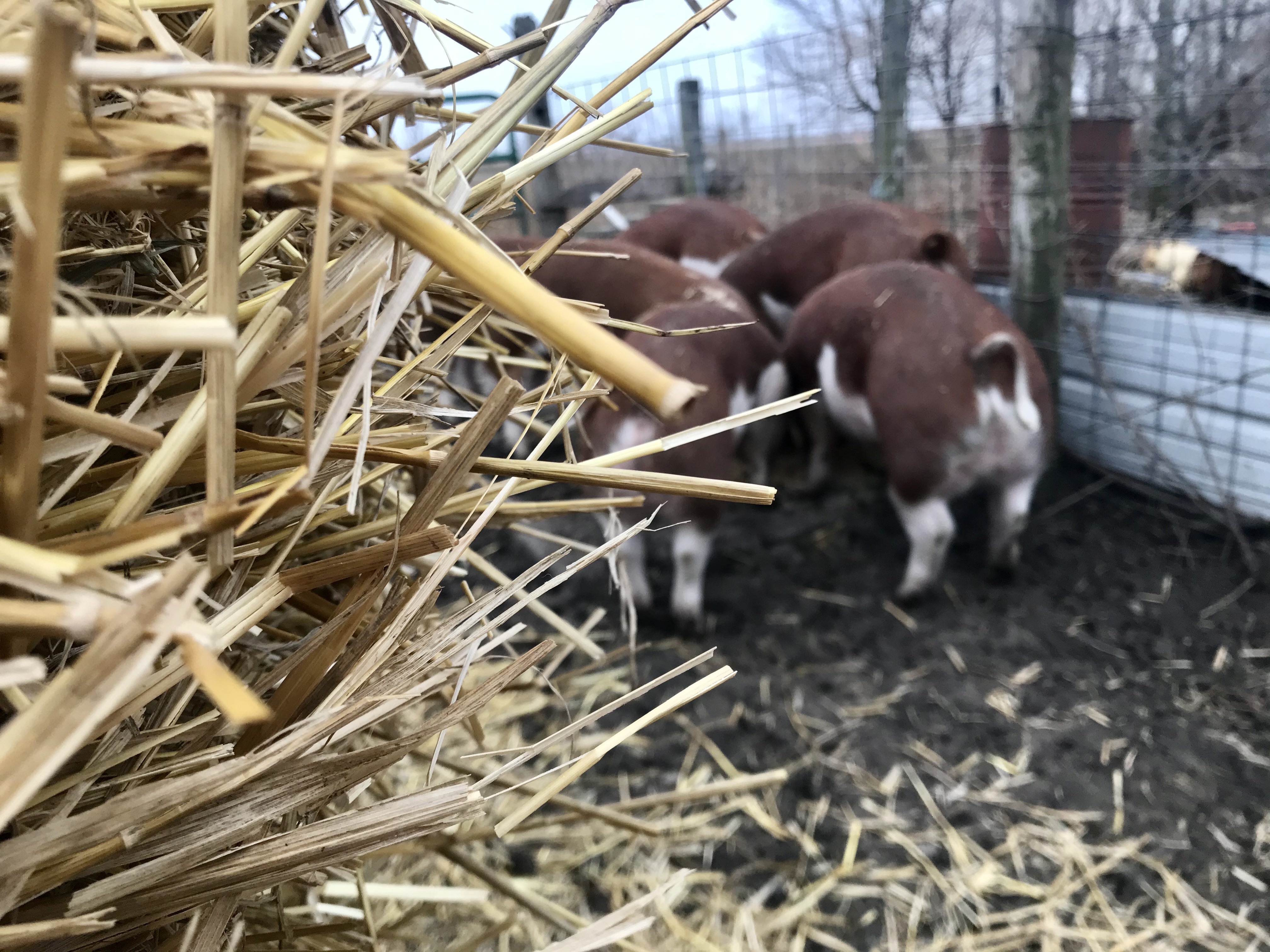 And put a big round of straw in with the little not-so-little pigs so they could play in it.