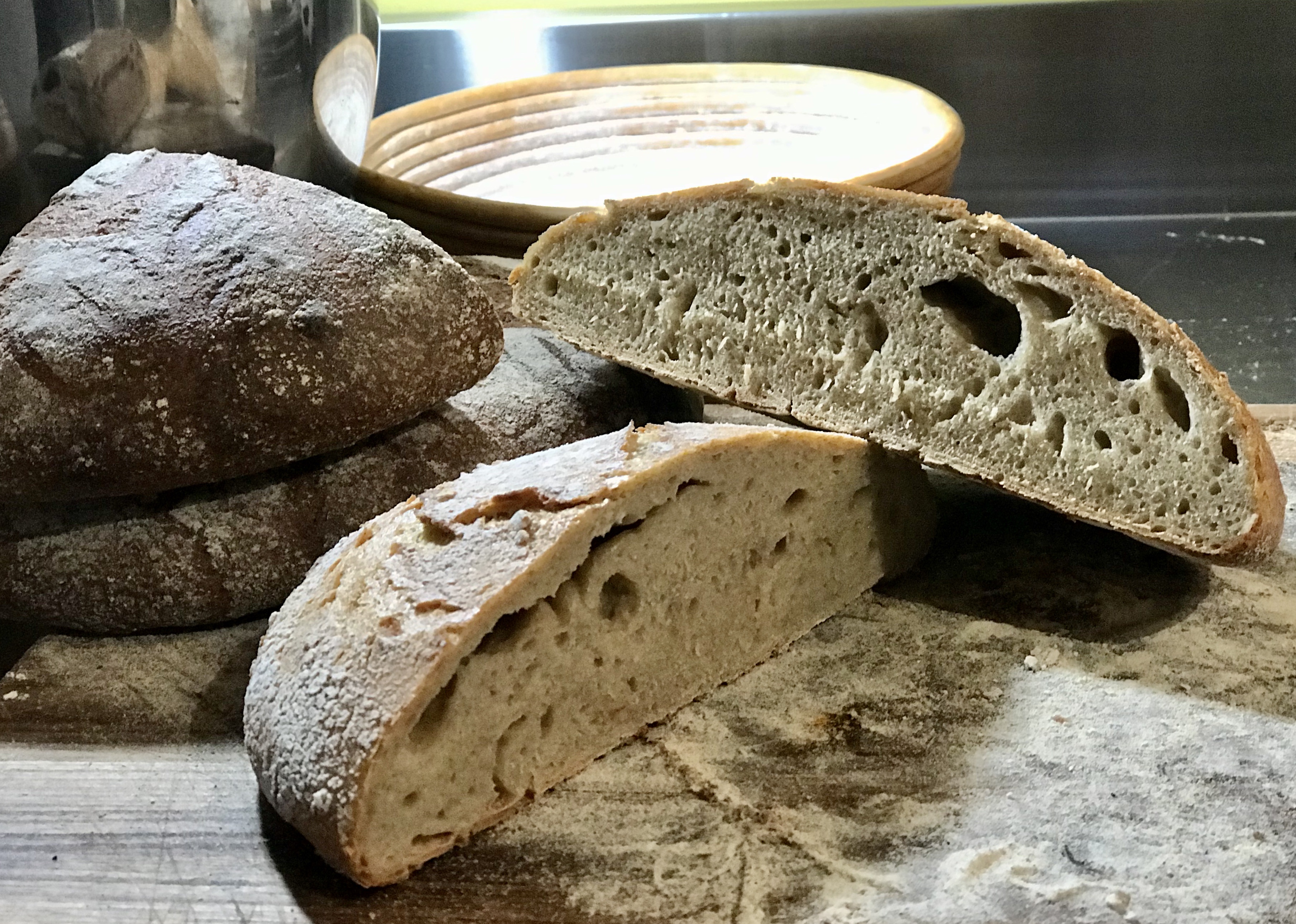 • I’m using sourdough and a mix of flours — locally milled flour, a bit of rye and about 1/2 to 3/4 regular or bread flour (depending on what I have on hand). I proof initially about 4 hrs in a 68F house and then overnight in the fridge in their proofing baskets — and then up to room temperature before baking the next morning. I think that is the one I might be overdoing…. Making bread is so much trial and error. Your loaves are gorgeous inside and out. I get a beautiful, shattering crust and rise, but no nice big holes.
