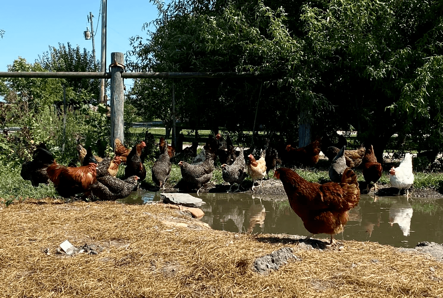 This are the chickens when I let them out yesterday – apparently the ducks pond has nicer water! Ooo.
