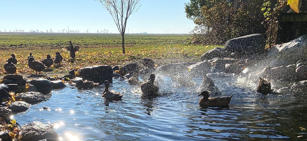 4. Love the pond! I have two ducks, one lays eggs. I thought I would love the eggs but the white is so thick for frying.