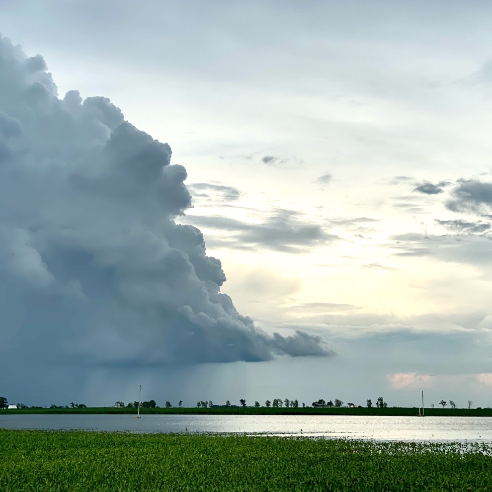 The floodwaters are slowly draining now. They smell kind of brackish, dark and ominous. I dreamed the other night a crocodile came up out of the floodwaters. But they don’t have crocodiles here – alligators but not in Illinois. But anything could be washing through that big hole in the bank. Once the ditch, that was once a creek, goes down, the men will fix the breach in the bank and we will see what nature decides to bring next.