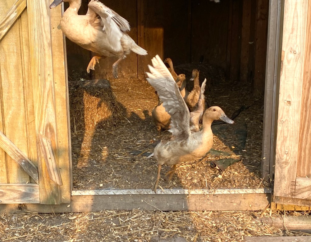Early morning ducks just want to GET OUT!!