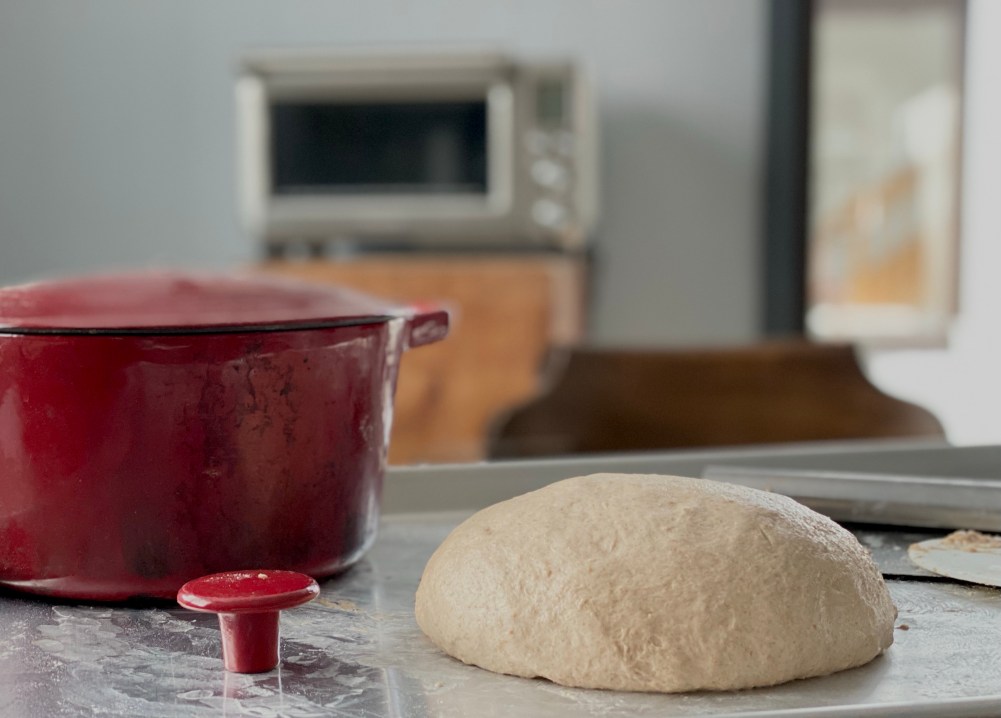 I open Our Tiny Flour Shop at the mill at 9am on Saturday mornings. So I am at the mill baking bread in the toaster oven. Today’s loaf will be Red Fife, Black Emmer and our High Protein Bread Flour.