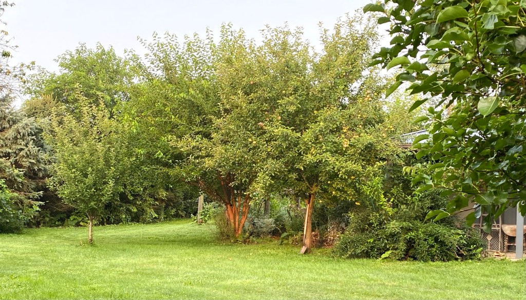 This is the first year that our young apple trees are producing. The apples are small but ripening nicely. The tomatoes are ripening too and we have begun to make sauce. John grew a good crop of sweet corn. Today I will see if I have everything for corn relish.
