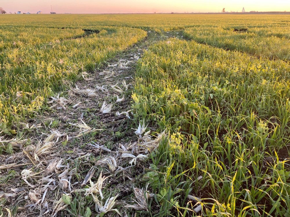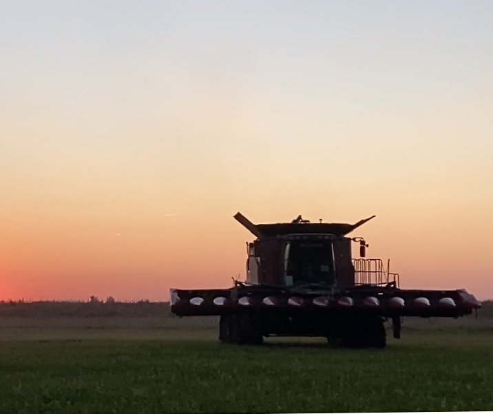 The organic white corn was in little islands surrounded in cover crop so the combine harvester left crop circles in the cover crop. You can see that the cold is hitting the cover crop now- soon it will lay down as a golden blanket to protect the soil fir the winter. We have been eating the Daikon radishes too – they are very tasty.