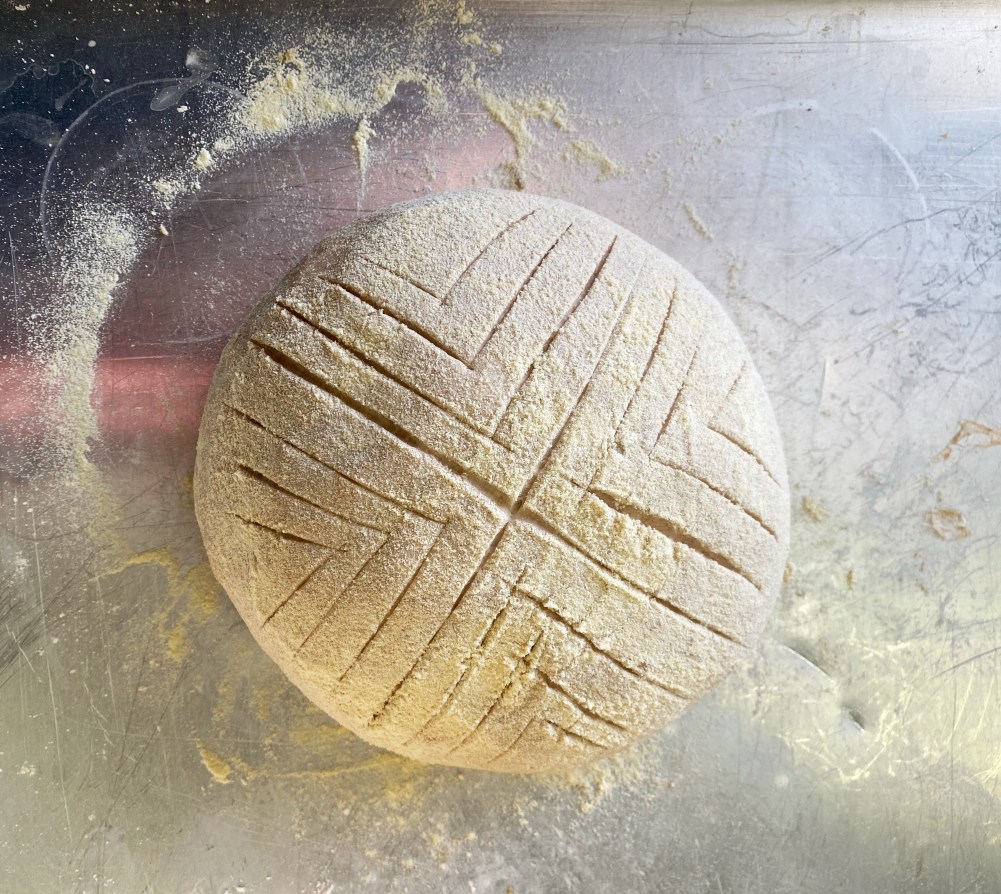 I am still baking at the mill in between my other jobs. No kitchen – no posh oven. Just my bench top oven in the lunch room, a bowl, and flour, salt and yeast. Water from our water fountain. I maintain that we should not need anything fancy to make a decent loaf of bread – as long as the flour is good.