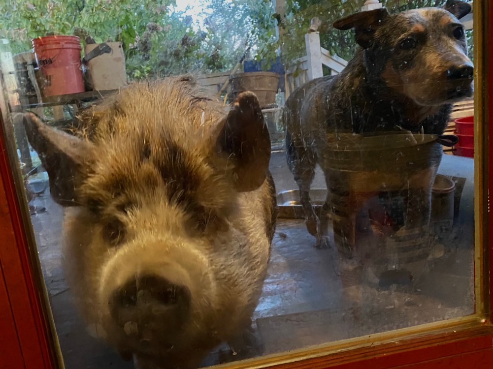 Here you are! I did not even have to go outside. That did not take long for her to be up here vandalising the porch again. Oh my gosh those dirty windows.