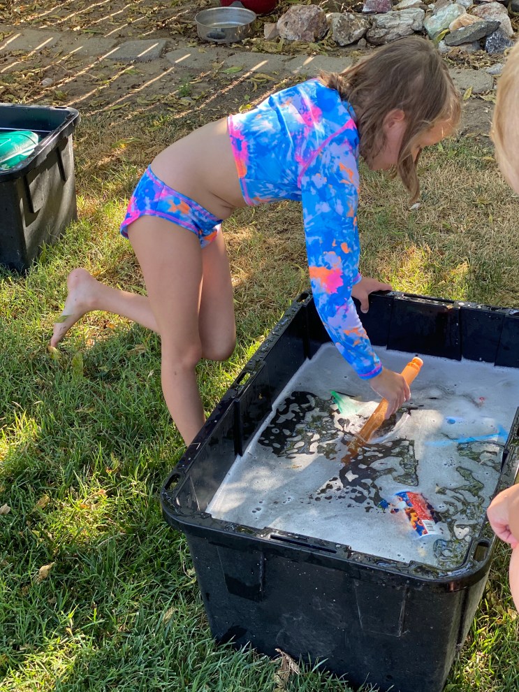 Below we are riffing on a bubble bath – water play when you don’t have a pool.