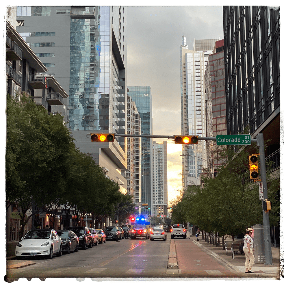 I am traveling again. Today I am in Austin, Texas. Hot. Hot. Hot. Like my Dad I am no good in the heat. But I love cities.