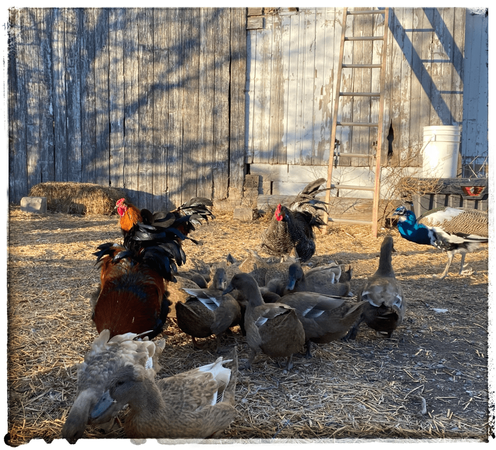 They have two barns to shelter in and without any hens to fight over the barn yard is a much nicer place. All up I have counted thirteen roosters. Though – honestly – they are hard to count so there may be more!
