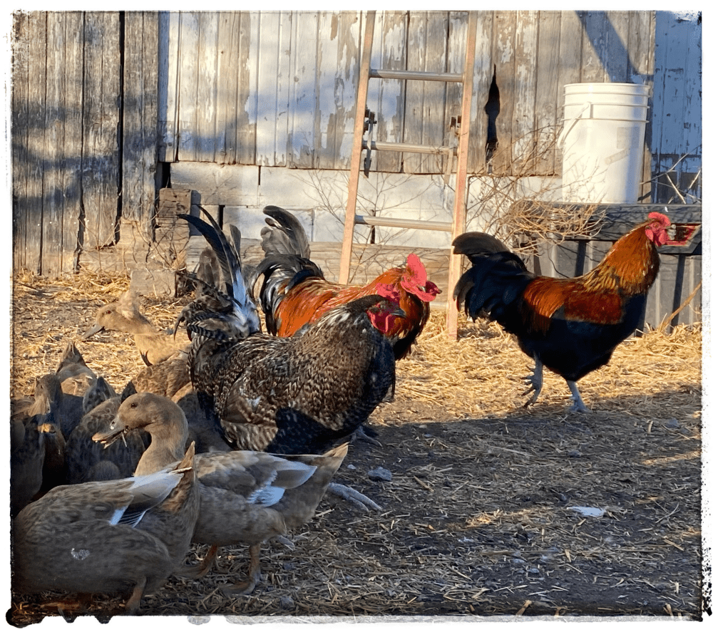 • If I remember correctly, my parents kept only two roosters—the main one and a back up. We had cattle also, and my dad did the same—two bulls that were kept in their own separate, fenced pastures, and only allowed to visit the cows once a year. Males are aggressive and territorial, but it’s in their nature to be so.