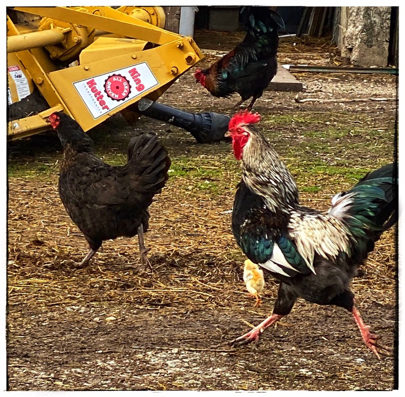 This is a strong chick though – already it has survived a few days in amongst all these roosters.