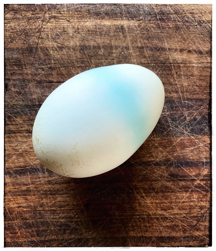Did you see that egg? The day after Easter someone lays an egg with a teal stripe all around it. This does make me wonder how they actually attach the colour to the egg. You can scratch the brown off a deep brown egg when it is freshly laid.