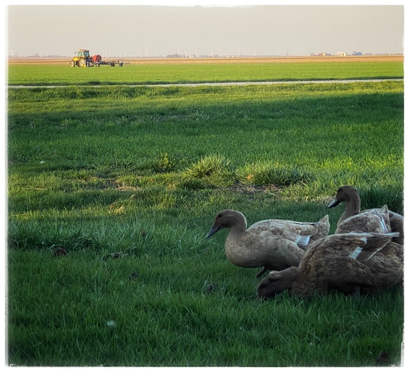 The cover crop is being sown. We are late this year, due to such a rainy winter.