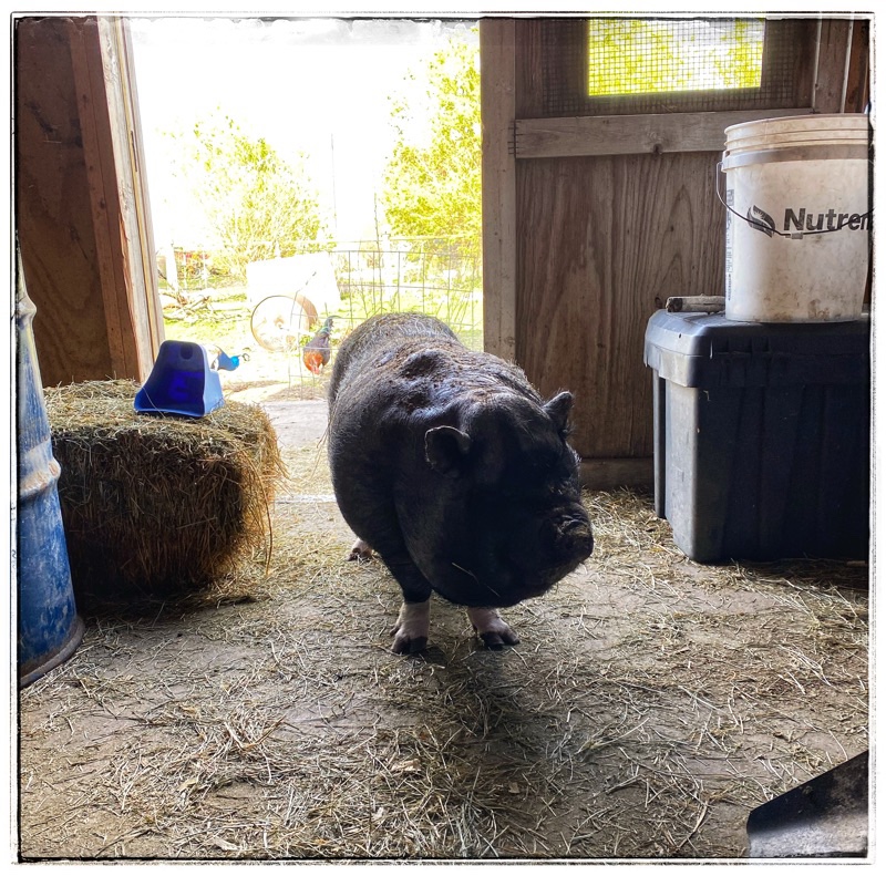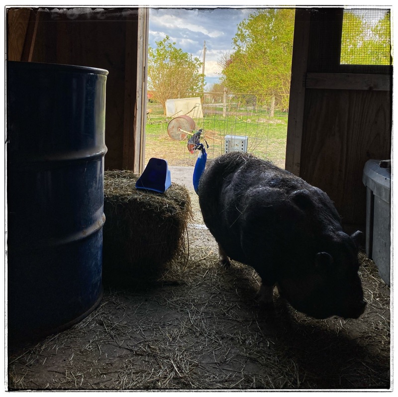 Then when I shut the door he will race after me, calling out – slow down, slow down, as I walk to his own barn door to fill his own bowl with his proper feed.