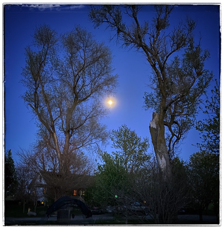 I like night chores too. Take doggo for a stroll/mad zoomy around the back yard. Make sure the Girls have water and lock them up for the night. A walk around sniffing scented night flowers, check my passionfruit vine in case any of the fruit has ripened and fallen, say hello to the moon and the Southern Cross, and then in to feed doggo and Husband and self. I like your big skies. Mine have more tall trees and neighbours in them…