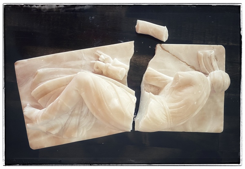 St Cecilia is sitting on the table beside me. Broken in half. Reminding me that yes – we are all torn like this. Especially immigrants. We must get over it. We cannot give up just because we feel legless.