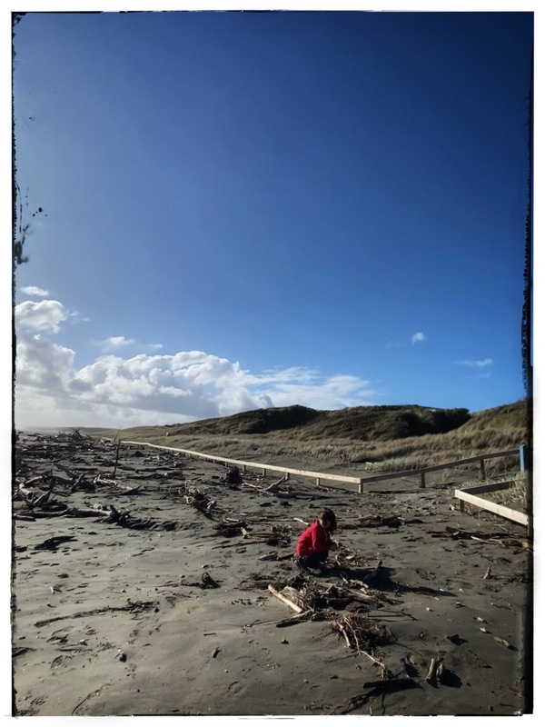 And gather things. Mostly pumice. There is no rubbish on this beach, just piles of driftwood.