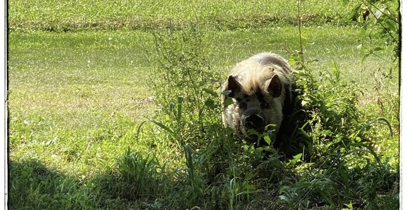 Tima the kune kune in the garden