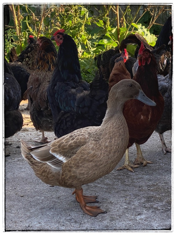 Quacker (the last duck) has been fully incorporated into the barn flock. I still have not found where she sleeps, it will be in the barn but she has hidden herself well which is good.