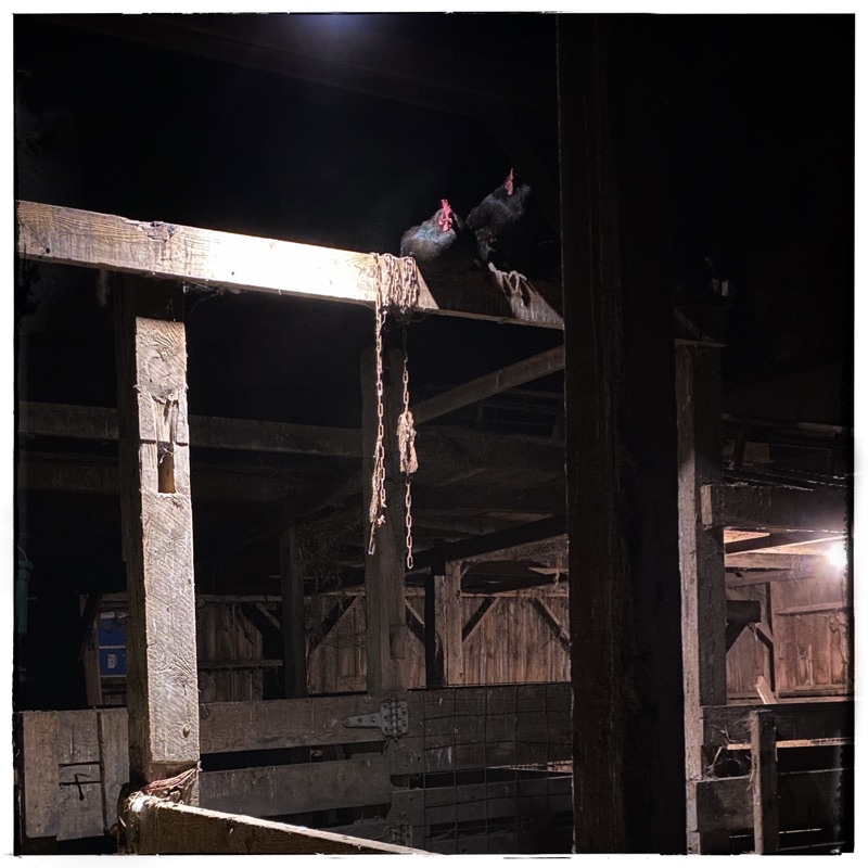 I do all my night checks without light. In the dark. Often lit only by the stars and a little moon. It is my own personal challenge to check the animals using all my senses. Only one of which is sight. But I do have very good night vision. I think some people have better night eyes than others. Night eyes take a moment. Don’t hurry it.