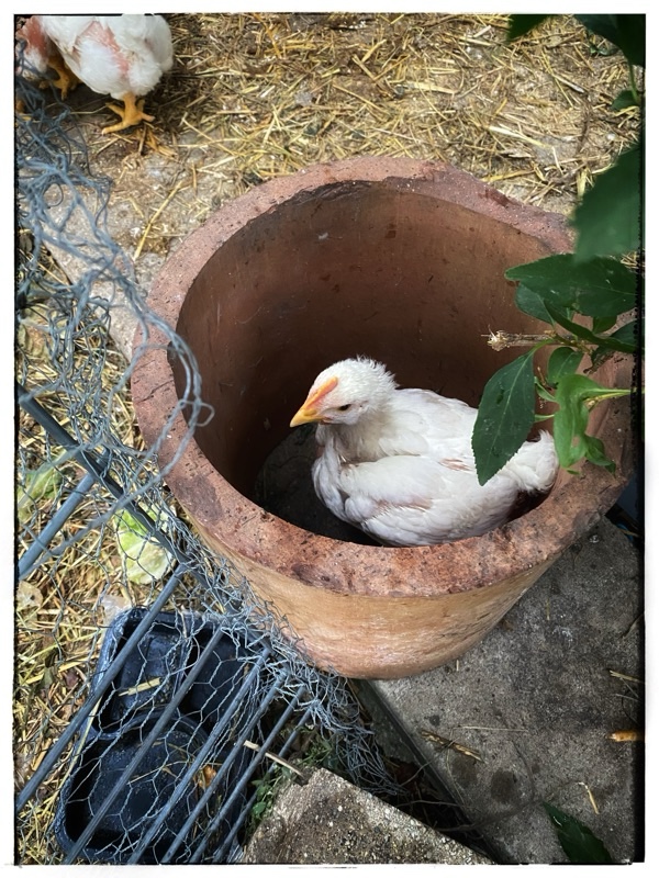 One tried to take a short cut. Not quite ready for the pot yet, chicken.
