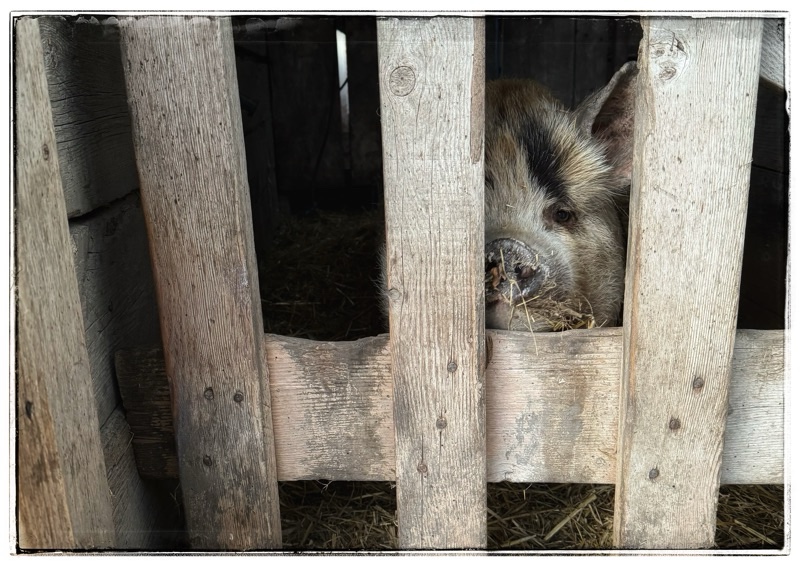 Oh Tima… she has come a long way since that tiny piglet you brought home so long ago. I loved the photo of her beside the steps in your black cat post; she looks like a carved stone pig. What a wonderful garden decoration that would be…