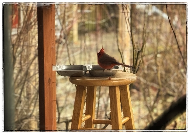 I wish we had cardinals here but sadly they don’t seem to like this corner of the USA. Our crows and scrub Jays are the thieves here. They will eat whatever they can find. Best to you and the local farmer in getting back to speed before spring chores need to happen 🙂