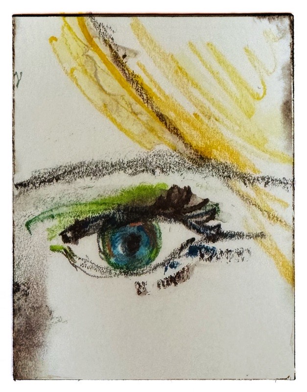 I was working on my daughters eye (above) last night then out of the blue she calls. (she is inAustralia). Huh. Of course the rest of the face is rubbish but I joyously cut the good bits out with my trusty scissors! Success really is that simple!