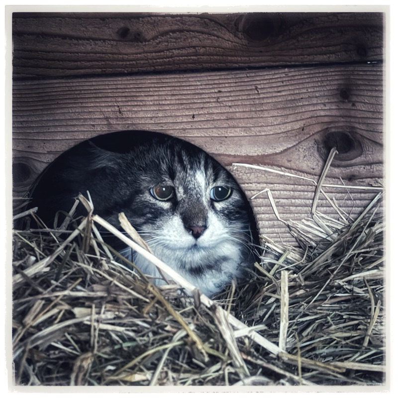 But the Tall Teenager, who is now an adult and who is looking after the farm for me while I’m away had this wild cat that’s been hanging around his place. I don’t know. He wanted to bring it over here so I agreed because he is being so helpful and so here we are, beautiful big: Tom Kat.