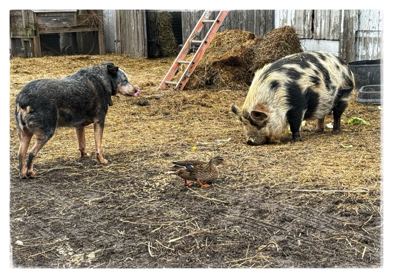 Most of the snow and ice and mud has reluctantly dried up so Him Indoors can do the morning pig chores again. I will continue all the heavy stuff but I think he can begin the mornings so I can write at the right time. Next week I am off to California for a week. (Our first chance to take TKG TAKE10 traveling) so we need to knock the kinks out of his morning routine.