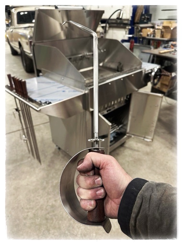 I love working in his workshop with him. It reminds me of working with Dad. Last night he got distracted and made a grilling stabber for turning steaks, as a gift for the guy who is buying this grill. We call them barbecues in NZ. Or Barbie’s. But not for Barbie. Of course. Though I am sure Barbie could cook a mean steak on this machine.