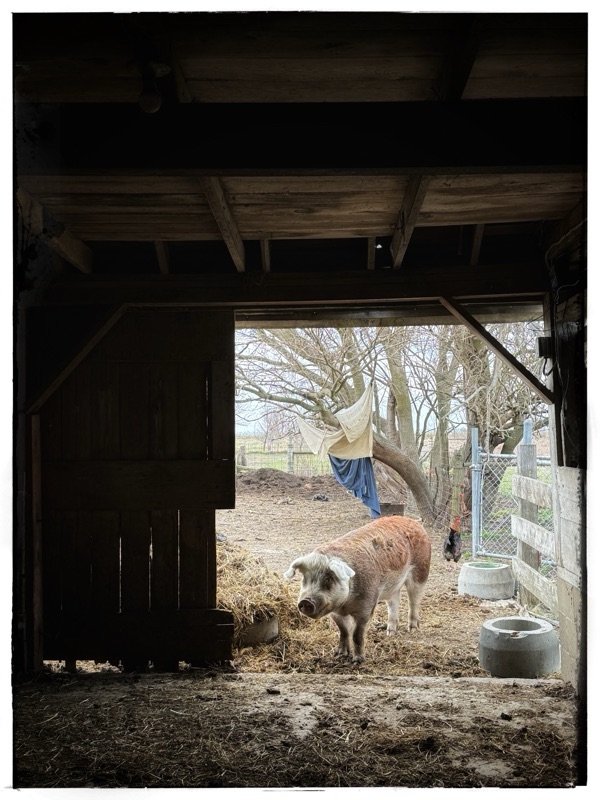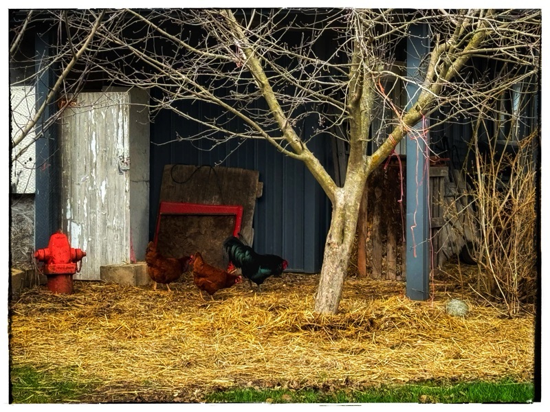 So, I was with my friend and we were cleaning up, making sure that there was no rubbish or trash on the ground. Just general cleaning of winter debris. Plastic from across the state flies straight across our fields in the winter and stops at our trees and buildings. There are no fences and very few wind breaks to stop trash before I gets here. Anyway, I had this handful of rubbish, and I walked to the trash can in the barn, and just tossed the trash in as I walked past. Shrieks and squawks erupted and out of the black bin flew a chook, a great red hen, screaming in high dudgeon. She ran off in a ruffled fury. Giving us a proper telling off over her shoulder. I looked into the rubbish bin and there were two eggs, warm eggs, sigh. It was one of those big deep black bins and newly emptied. What are they like!? I just never know where they will lay next.